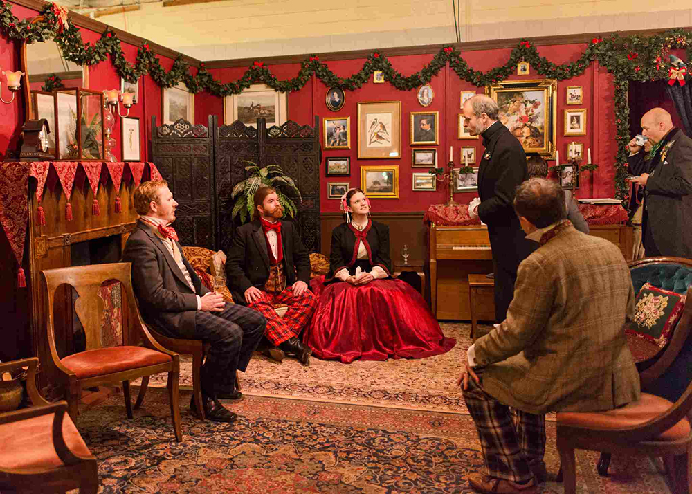 A The Great Dickens Christmas Fair la gente è vestita con costumi del periodo di Dickens tra una serie di casette e botteghe che rispecchiano la Londra di allora, dove si svolgono scenette teatrali, o si cantano carole. Tra le cose più interessanti: si può prendere il tè secondo il rito inglese alla Cuthbert’s Tea Shoppe, fare shopping tra bancarelle e negozietti artigianato artistico e vintage (sono quasi tutti artisti locali, di San Francisco o della Bay Area), vedere le danze, anche esotiche, irlandesi e del Medio Oriente, al Silk Road Stage, fare tour scientifici o letterari per le vie di “Londra”, o andare allo spettacolo più “hot”, il Saucy French Postcards Tableaux Revue, con tocco erotico e burlesque (per chi ha più di 18 anni) e spirito burlone, dato che è tutto in costumi d’epoca.