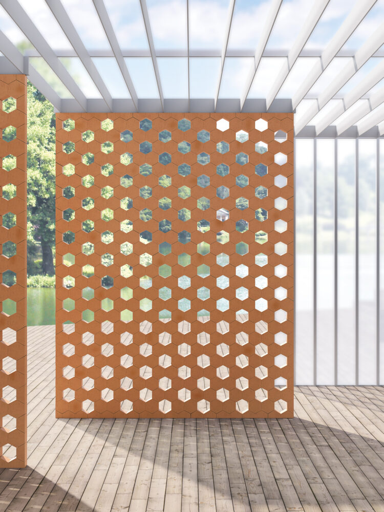 Pensato per la costruzione di pareti, strutture architettoniche e complementi d’arredo, e al tempo stesso fortemente decorativo, grazie alla particolare conformazione che permette lo sviluppo di inediti pattern grafici, Hives è composto di un singolo elemento in terracotta – uno dei materiali da costruzione più antichi –, di cui conserva le proprietà acustiche e termiche, la sfumatura calda e la texture materica. Il modulo è prodotto secondo la tecnica artigianale della trafilatura ,così da ottenere un mattone dalla struttura organica con dettagli sempre unici e inaspettati. È disponibile in un singolo formato che misura 13×22,5×7 cm. Dove si usa Hives? Può essere impiegato sia in interno sia in esterno, purché coperto, posato in più modi per creare il pattern che si preferisce.. I mattoni infatti possono essere installati sia dal lato verticale, per dare vita a divisori, sia in orizzontale. Così posizionati, allineati o sfalsati, consentono di realizzare pareti curve per la costruzione di elementi architettonici e complementi d’arredo. Insomma, si fa presto a dire “mattone”; ma se non c’è un vero progetto dietro, non si costruisce nulla di buono. Buon design non è per forza un progetto dalle forme strabilianti, il genio preferisce celarsi nelle cose semplici.