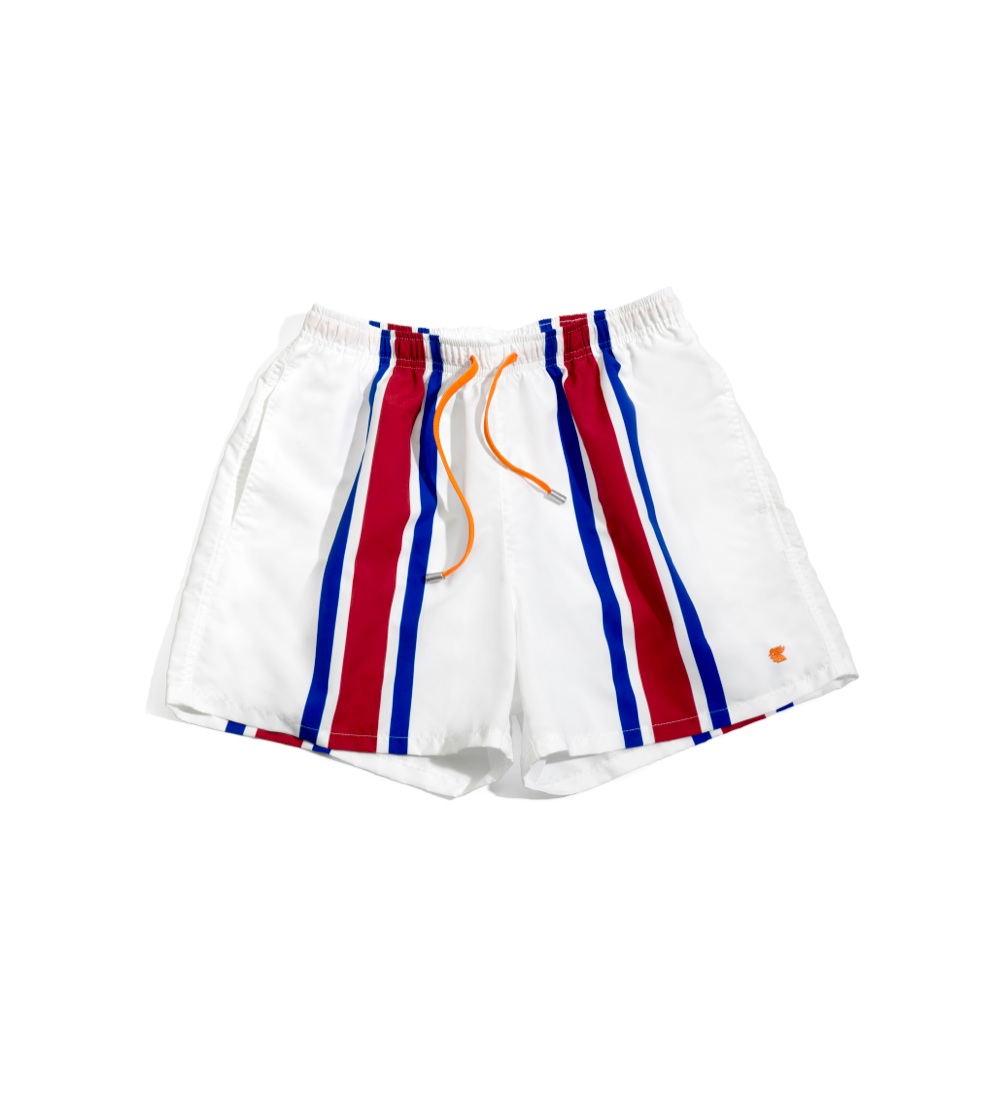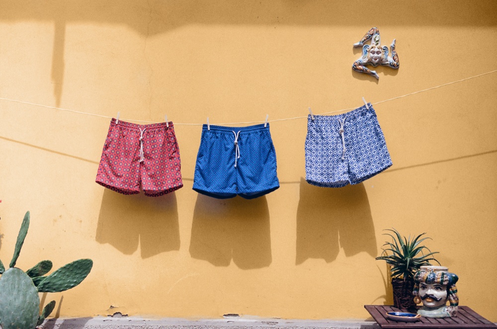 Non si portano più soltanto sulla spiaggia, ma diventano capi eleganti, da indossare anche mentre si sorseggia un aperitivo al tramonto. Sono lavorati eseguendo manualmente fino a trentadue passaggi sartoriali, dal taglio del tessuto al ricamo del logo. Non pesano più di duecentocinquanta grammi e hanno fit che spaziano dal modello Positano a mezza gamba dritta al Cambridge court ispirato ai calzoncini da calcio, con spacchetti laterali che assecondano i movimenti e piccoli fori nella parte inferiore del taschino che lasciano fuoriuscire l’acqua ed evitano l’effetto pallone una volta riemersi dalle prodezze natatorie.