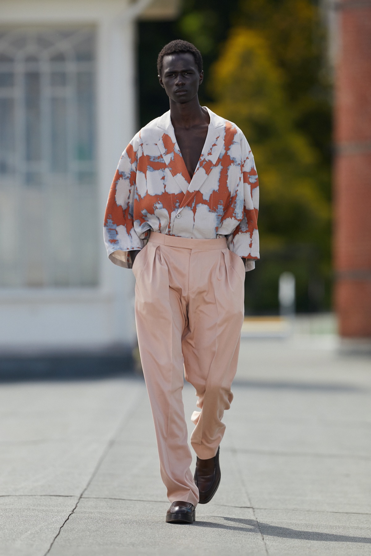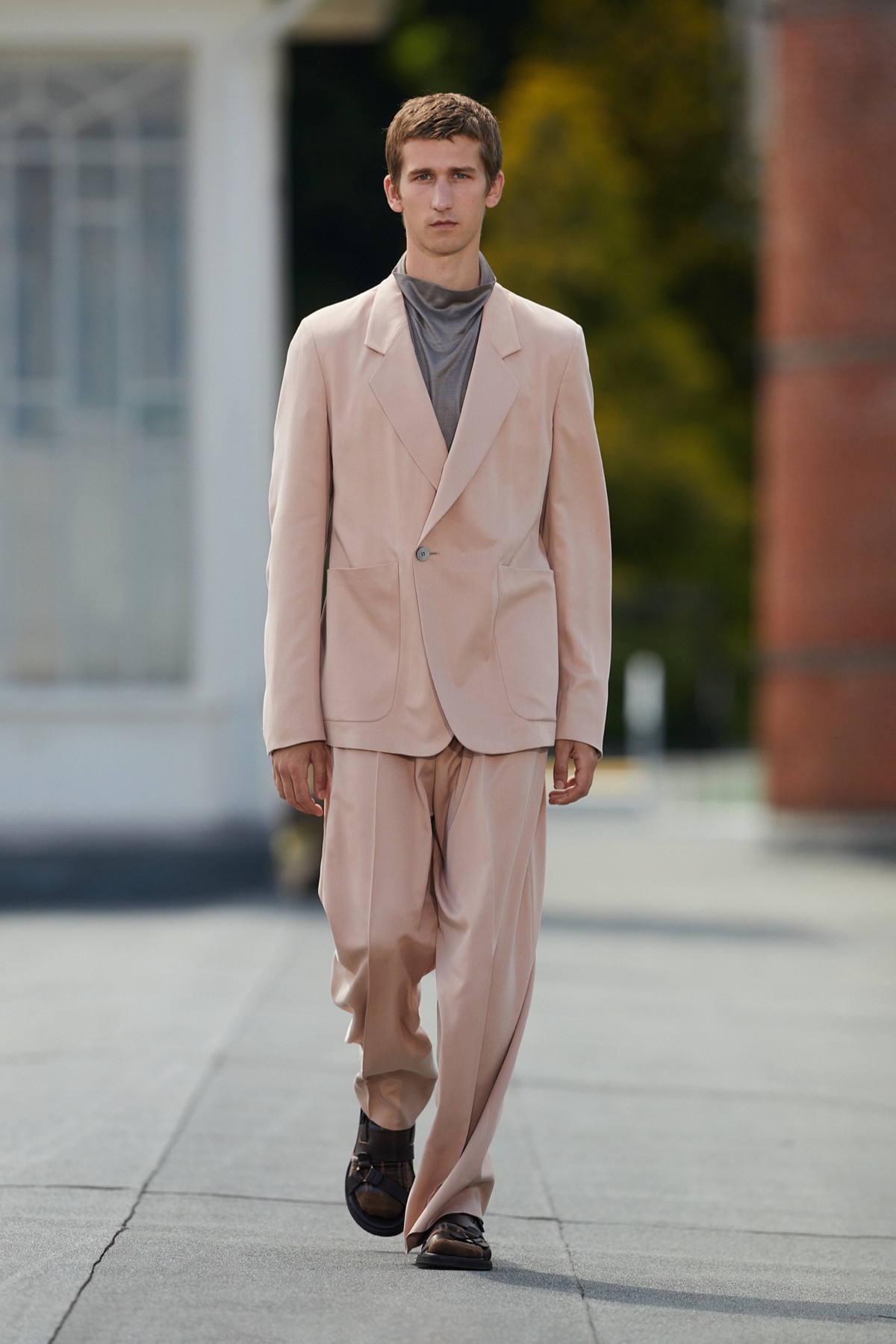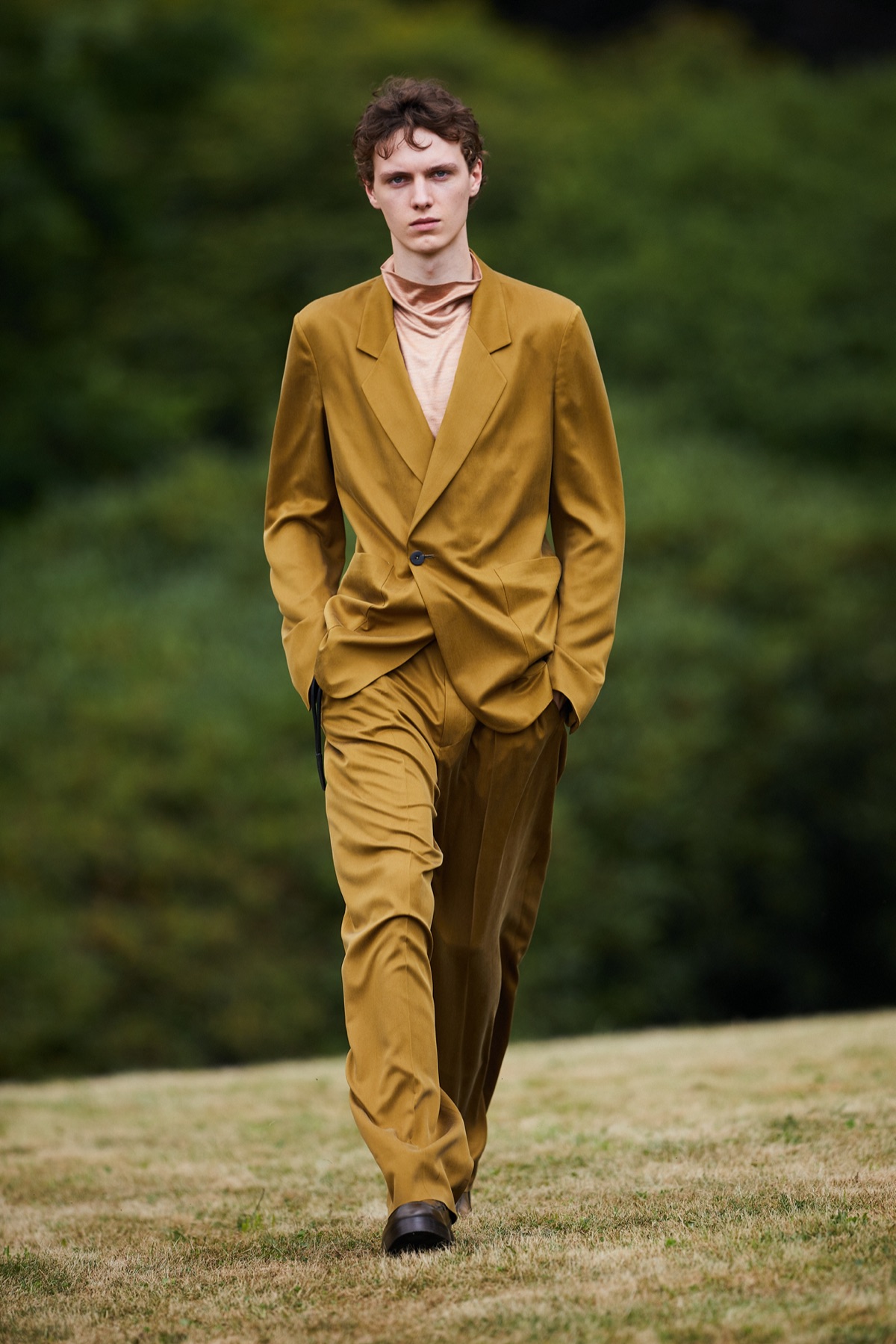 Tailoring e tecnologia, quindi. Una collezione in cui gli elementi naturali e i telai si fondono in un’armonia dinamica dove gli abiti definiscono in modo impeccabile nuove categorie e soluzioni. Un senso di fluidità e precisione pervade la collezione, tanto nelle forme quanto nelle scelte cromatiche. I volumi sono morbidi e generosi, in una fusione cromatica amalgamata di argilla, gialli primula, rosa ortensia, grigi sienite, blu riverstone, verde carabus, neri ardesia. I materiali sono leggeri ma consistenti: lana, canapa, fibre grezze, lino, carta-seta, nappa effetto carta, lane #UseTheExisting.