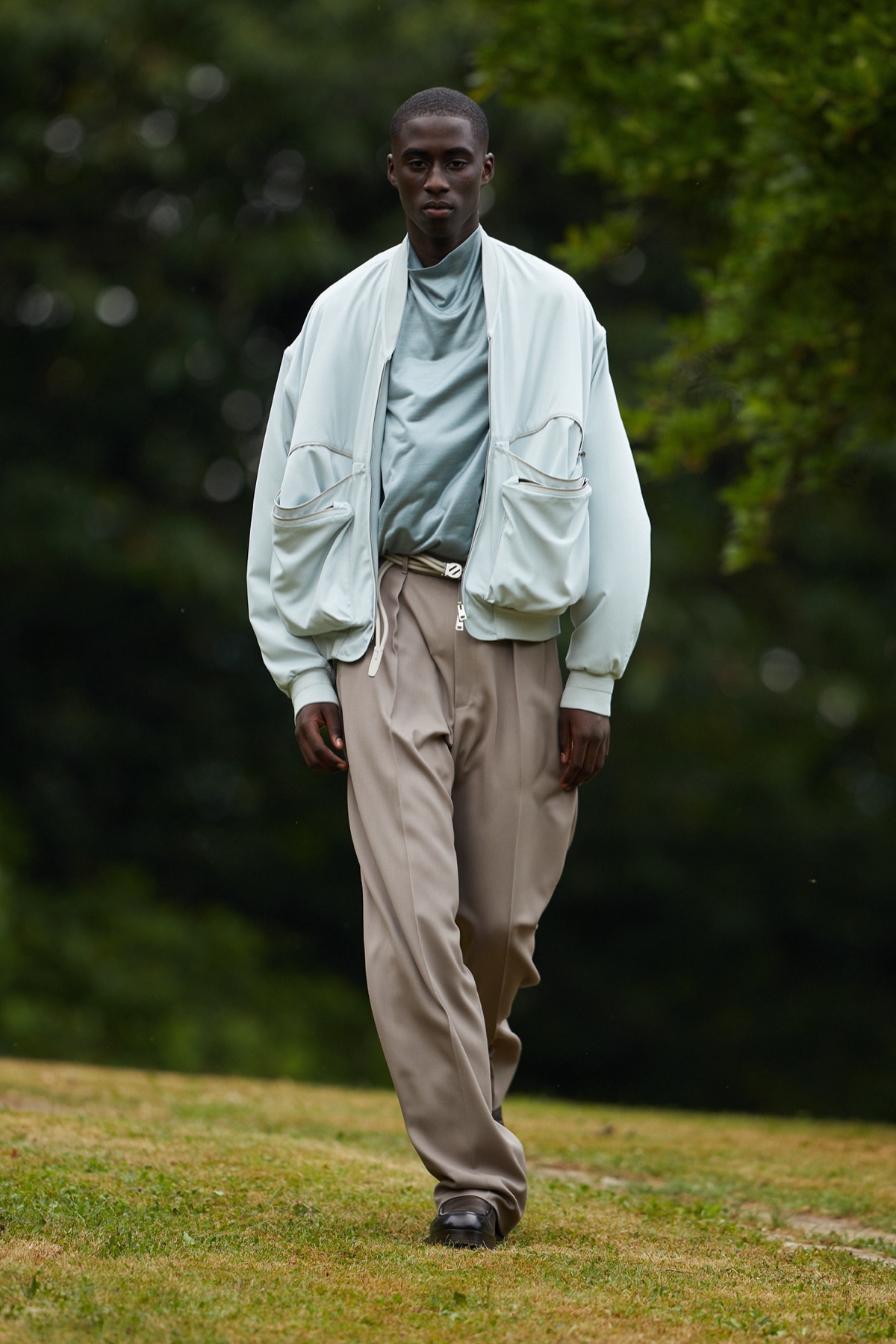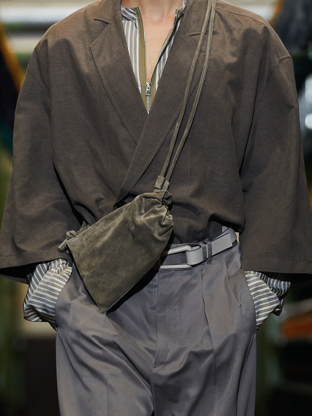 Alessandro Sartori, sperimentando soluzioni con spalle calate, scolli profondi, forme stratificate e con senso poetico della funzionalità, espresso da tasche ampie e zip che consentono di espandere i volumi, amplia la ricerca sartoriale di nuove categorie ibride per definire la sua nuova visione di Zegna.
