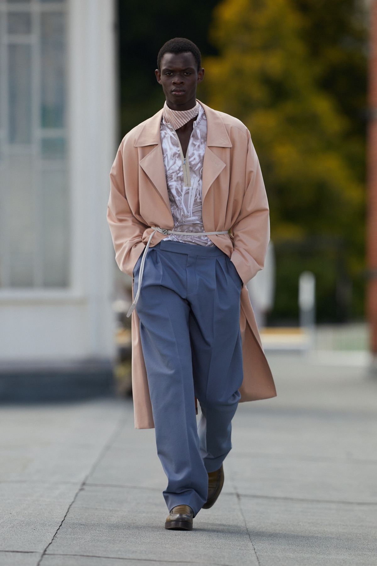 La passerella, un sentiero che si snoda tra i boschi dell’Oasi Zegna, un parco naturale nelle Alpi Biellesi in Piemonte. Gli abiti, costruiti per il 35 per cento da tessuti rigenerati, riciclati, rimessi in vita dal direttore creativo della maison, Alessandro Sartori. Sfila nella natura la nuova collezione di Ermenegildo Zegna XXX dissegnata per trovare quel punto in cui tailoring e tecnologia si fondono. Nell’anno in cui la casa fondata nel 1910 a Trivero compie 110 anni, la riflessione è sul significato della presenza di ognuno di noi in questo mondo e il valore delle azioni di ciascuno per il bene del pianeta e dei suoi abitanti. Il racconto, un’esplorazione del legame unico tra natura e macchina che si sfoglia leggendo i 42 look in cui vivono le idee dello stilista.