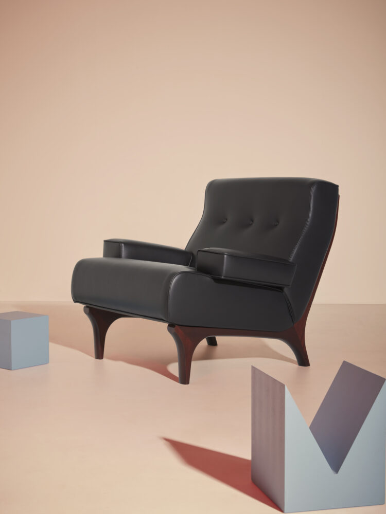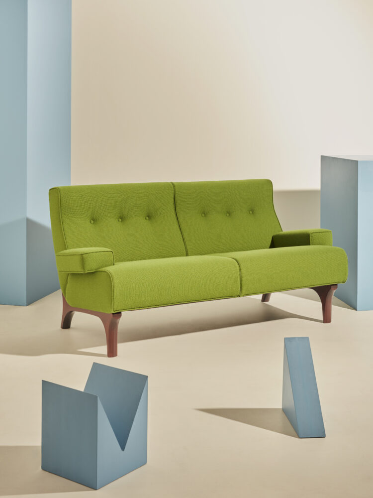 A dare inizio a questa bella operazione è la Exto di Varedo, a due passi da Milano dove sta pure pure Tecno, che in un catalogo di progettisti giovani e, più che di belle speranze, di ottime certezze, inserisce oggi alcuni pezzi di Gerli, rieditati in accordo con gli eredi. L’ésprit è tutto anni 60, dato che la poltrona P e il sofa D (entrambi Sir 73) sono proprio del 1964. E, nelle forme, sembrano rientrare nella categoria del “mobile borghese di alto artigianato” (ancora Dardi), se non fosse che quel particolare dell’elemento ligneo dice altro: parla di modularità, di una unità di misura, ripetibile per una, due, tre volte a piacere, che è in pratica la poltrona singola. Raddoppiatela ed ecco il divano, ecco che la finitura e l’estetica della piccola serie passa intatta nella replicabilità di una produzione industriale – il geniale mix che è alla base della formula del Made in Italy.
