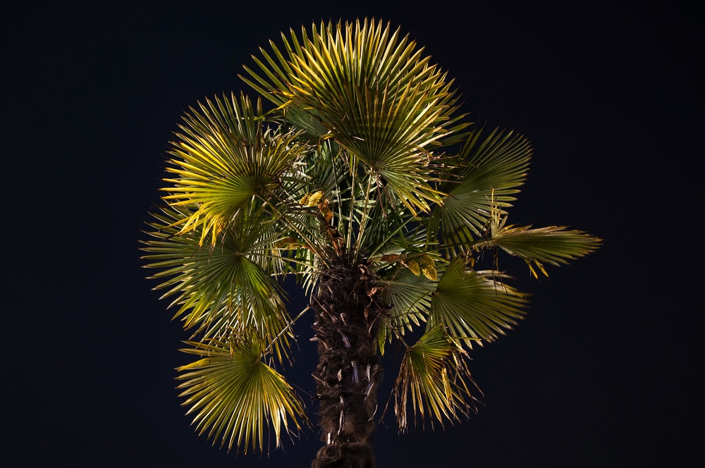 In queste fotografie non c’è artificio né allestimento, sono le luci della città a fornire l’illuminazione necessaria, il resto è la coniugazione di tempo, diaframma e ISO settati nella macchina fotografica. Hector crea un cortocircuito: osserva la natura attraverso un filtro artificiale, la luce dei lampioni che risiedono nei parchi, nelle strade e nei parcheggi. Lo scatto seriale e il rigore dell’inquadratura costringono l’osservatore a guardare in maniera diretta ciò che si trova davanti ai suoi occhi: rami, foglie e colori.