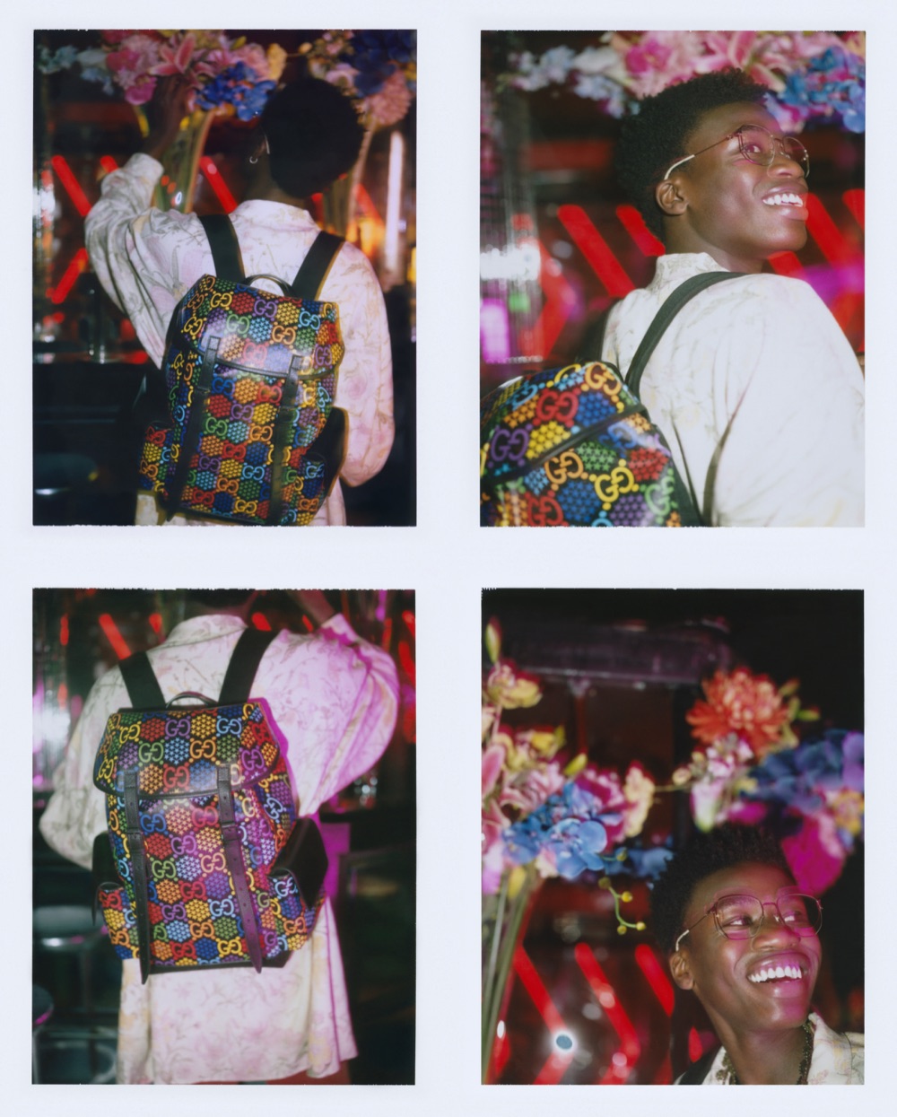 Le immagini e il video che le accompagna prendono spunto dallo spirito della collezione, nella quale Alessandro Michele, direttore creativo della maison, ha reinterpretato in modo fantastico il monogramma Gucci, dando vita ad una versione che ne rivela tutta la potenzialità streetwear attraverso la sovrapposizione di un motivo a stelle multicolori. Il risultato è un motivo assolutamente distintivo e contemporaneo che caratterizza i diversi articoli, tra cui capi ready-to-wear uomo e donna, borse, valigie, calzature, articoli di piccola pelletteria, accessori e un modello di orologio, e ispira una linea di gioielli raffinati.