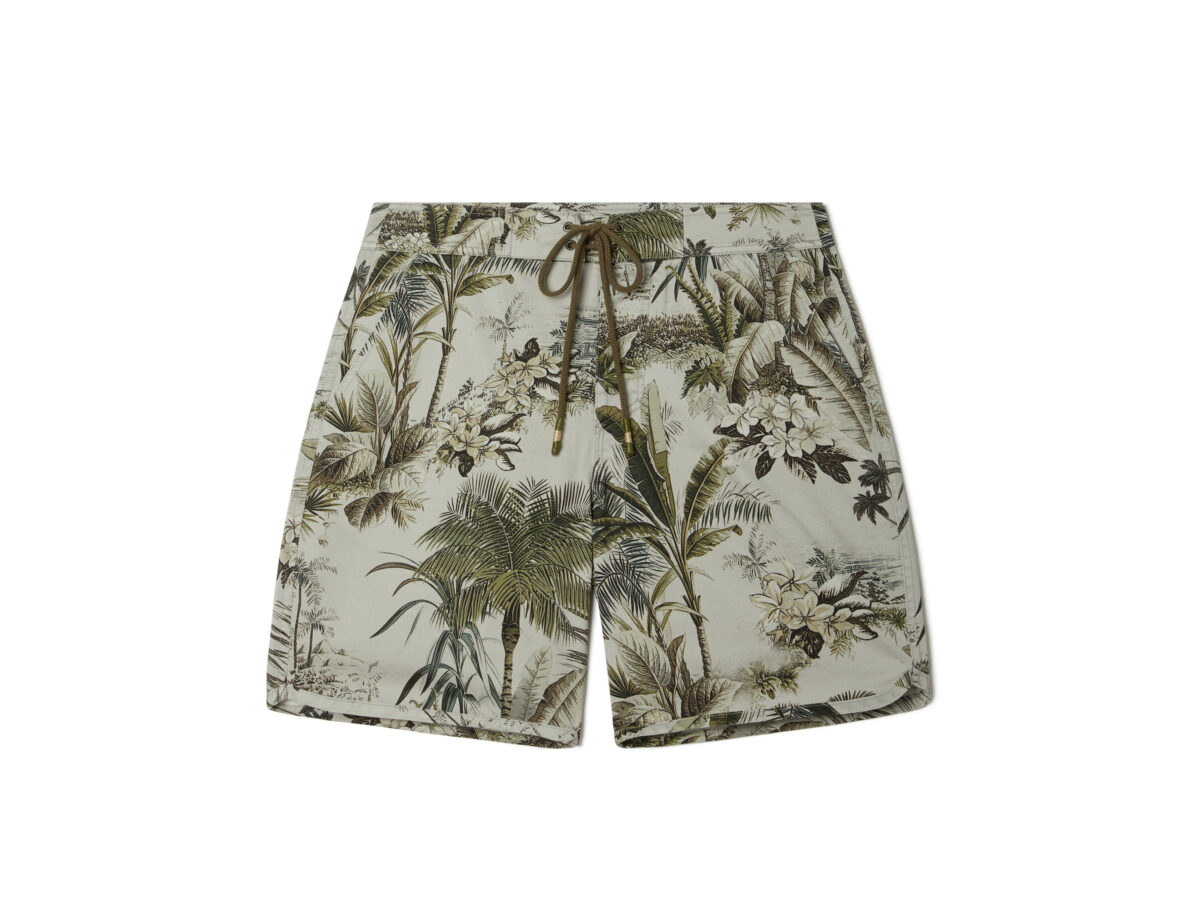 Alanui palm-tree print swim shorts è un costume da bagno maschile in cotone con coulisse in vita, toppa con logo sul retro e gamba dritta. La fantasia con le palme color oliva, racconta l’universo creativo del marchio fondato da Carlotta Oddi.