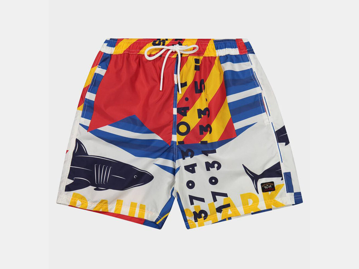 Paul & Shark Costume da bagno Save the Sea con stampa. Realizzato in poliestere riciclato ultralight & fast dry è un costume da bagno maschile con un fit regolare con tasche laterali e tasca con velcro sul retro. A renderlo riconoscibile, la stampa colorata perfetta per la stagione estiva