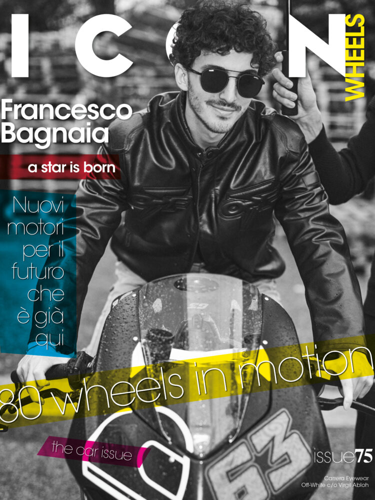 Due le copertine di Icon Wheels in edicola, per celebrare il mondo dei motori. Protagonista della prima cover il giovane fuoriclasse della MotoGP, Francesco Bagnaia. Torinese d’origine, il vicecampione della scorsa stagione è cresciuto nella Academy di Valentino Rossi, di cui fa ancora parte. E a proposito di Valentino, diventato il suo mentore e maestro, nell’intervista esclusiva sulle pagine del magazine Bagnaia confida: «Mi ha colpito molto per la forza mentale, la determinazione, la conoscenza di qualsiasi cosa e la pazienza nelle spiegazioni».