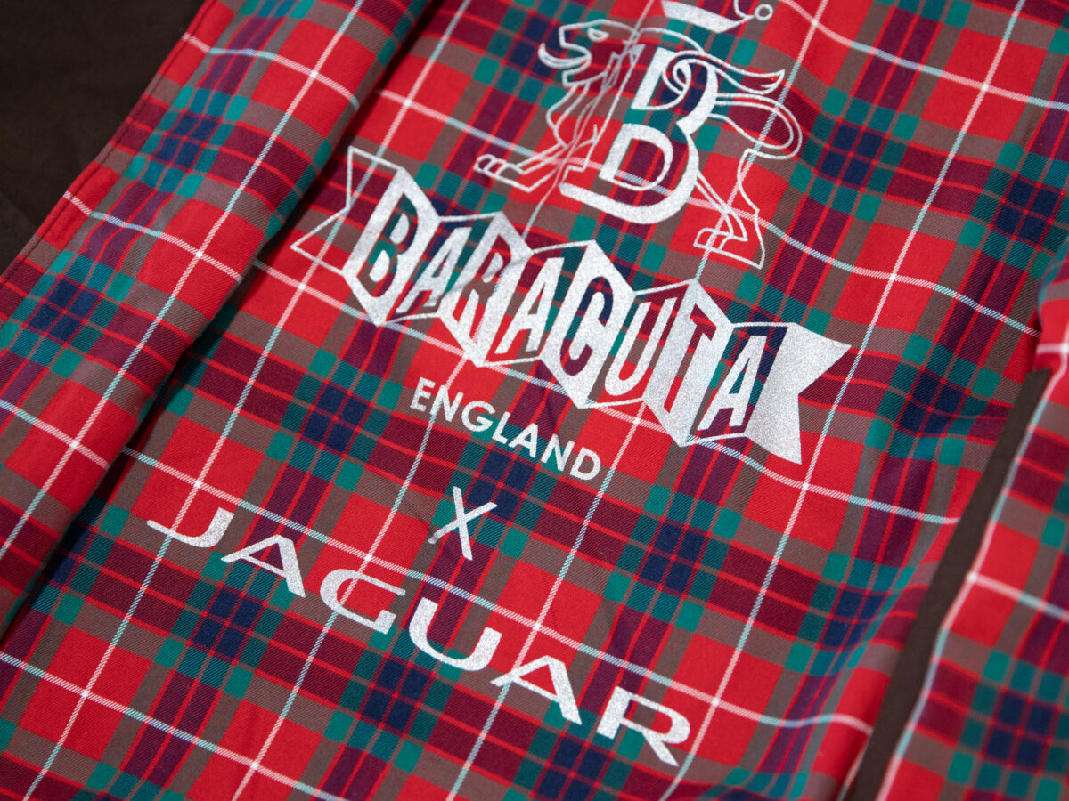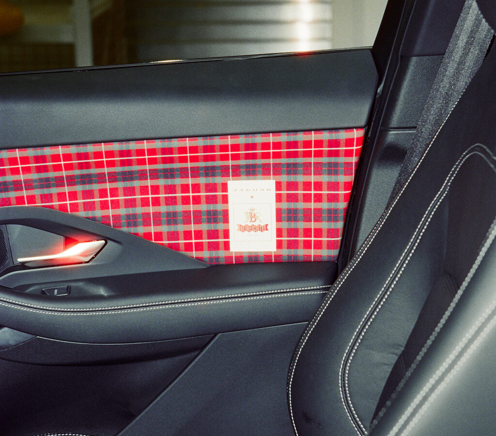 Per il progetto il suv E-PACE è stato personalizzato con la fantasia tartan tipica di Baracuta.