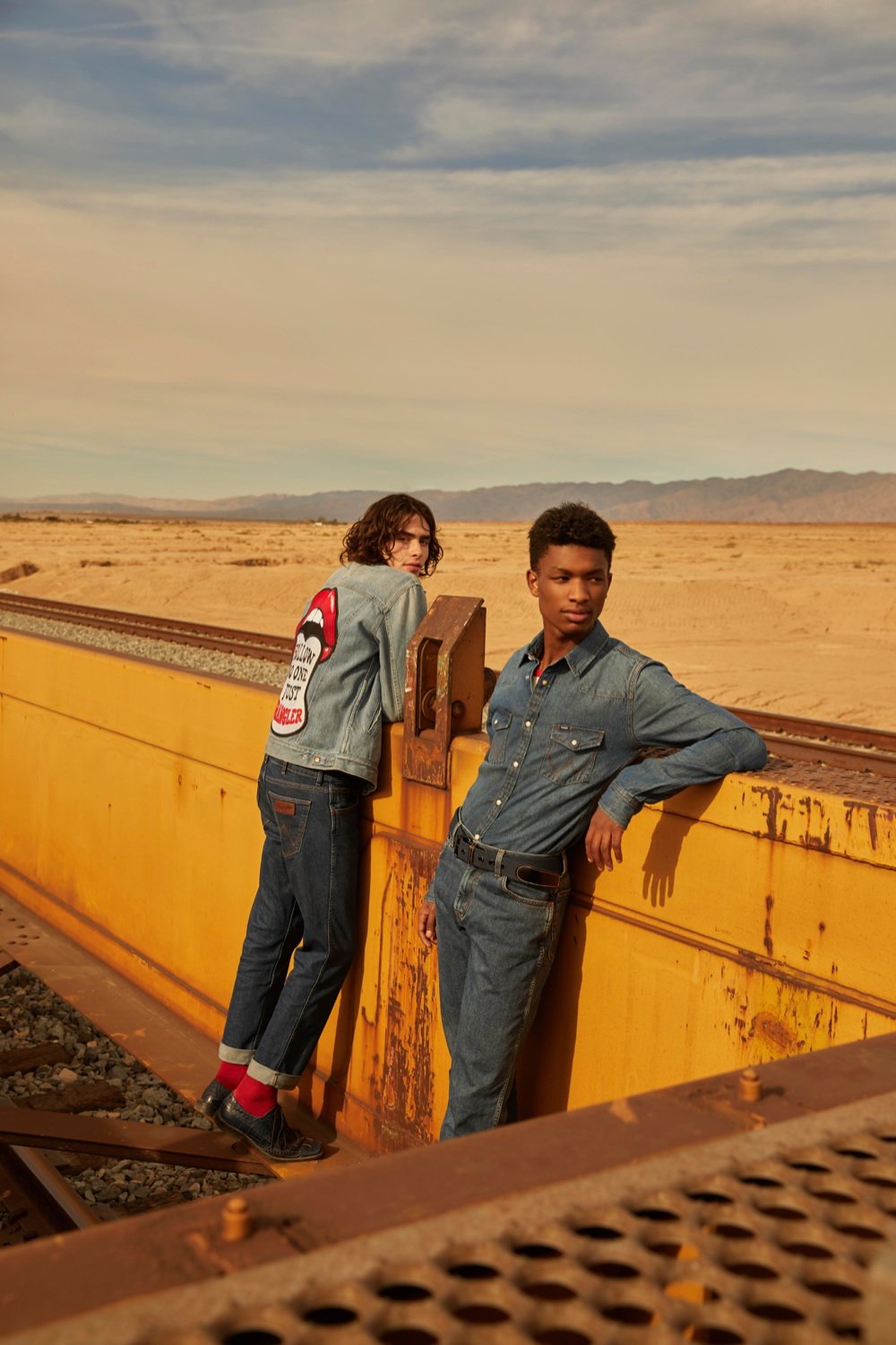In occasione degli imminenti festival musicali estivi, vedi il Coachella 2018, Wrangler lancia una serie di capi pensata per le bollenti giornate passate nel deserto o nei parchi in città ad ascoltare musica indie rock ed electro. Il look è total denim: jeans, shorts, t-shirt con stampe pop anni Novanta, giacche smanicate con maxi stampe, camicie oversize e bandane in testa. Un inno contemporaneo alla musica new wave.