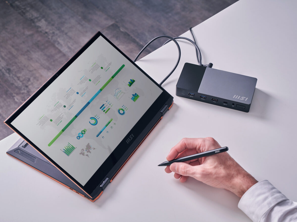 Si parte dal display touchscreen 16:10 da 13 pollici, la cerniera ergonomica a 360° gradi, in grado di ruotare il display per utilizzarlo, in base al diverso scenario di lavoro, anche come tablet, al processo di lavorazione CNC. La livrea Ink-Black è caratterizzata invece da bordi lucidi, finiture spazzolate, capaci di conferire a questo nuovo 2-in-1 un aspetto professionale e di grande impatto, basandosi su una piattaforma Intel® Evo™, equipaggiata con i recenti processori Intel® Core ™ i7 di undicesima generazione, dotato di sistema operativo Windows® 10 Pro e grafica Intel® Iris® Xe (https://it.msi.com/Business-Productivity/Summit-E13-Flip-A11X). Prestazioni dunque superiori fino al 10% rispetto alla media dei prodotti della sua categoria, ed al contempo straordinarie in termini di portabilità e durata della batteria, che può arrivare a venti ore