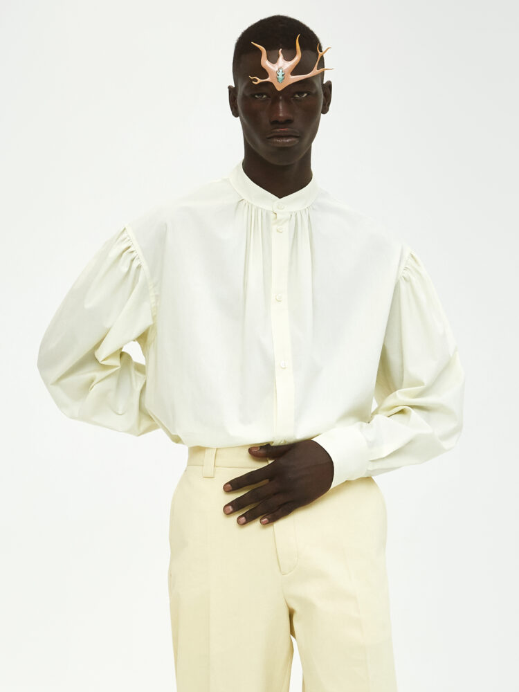Il sorriso e la luce negli occhi di Gaetano Colucci sono contagiosi. Nel momento in cui il mondo sembra riprendersi la sua brillantezza rinfranca. 25 anni, nato a Napoli, dopo essersi laureato alla Luiss di Roma, dove è cresciuto, è andato a studiare a Stanford, Santa Clara, Ca, per completarli con un master alla Cass Business School di Londra. Tornato in Italia, ha messo a frutto le conoscenze economiche per aprire la sua azienda, Ardusse. ‘Non ho studiato fashion design, ho imparato tutto da solo’, spiega. ‘Ho avuto genitori molto sensibili alla moda così mi ci sono avvicinato fin da piccolo, le fate Winx e le guerriere Sailor Moon erano le mie modelle ideali e usavo le loro silhouettes per disegnare i vestiti. Sono stati anche di grande supporto: mia mamma mi spronava a fare ciò che amavo e mio papà mi fece capire che per avere un brand era necessario conoscere anche la parte economica, per questo adesso sono contento dei miei studi, anche se lì per lì non ne capivo lo scopo e studiavo solo per dovere. Oggi, non smetto di ringraziarlo per avermi consigliato’.