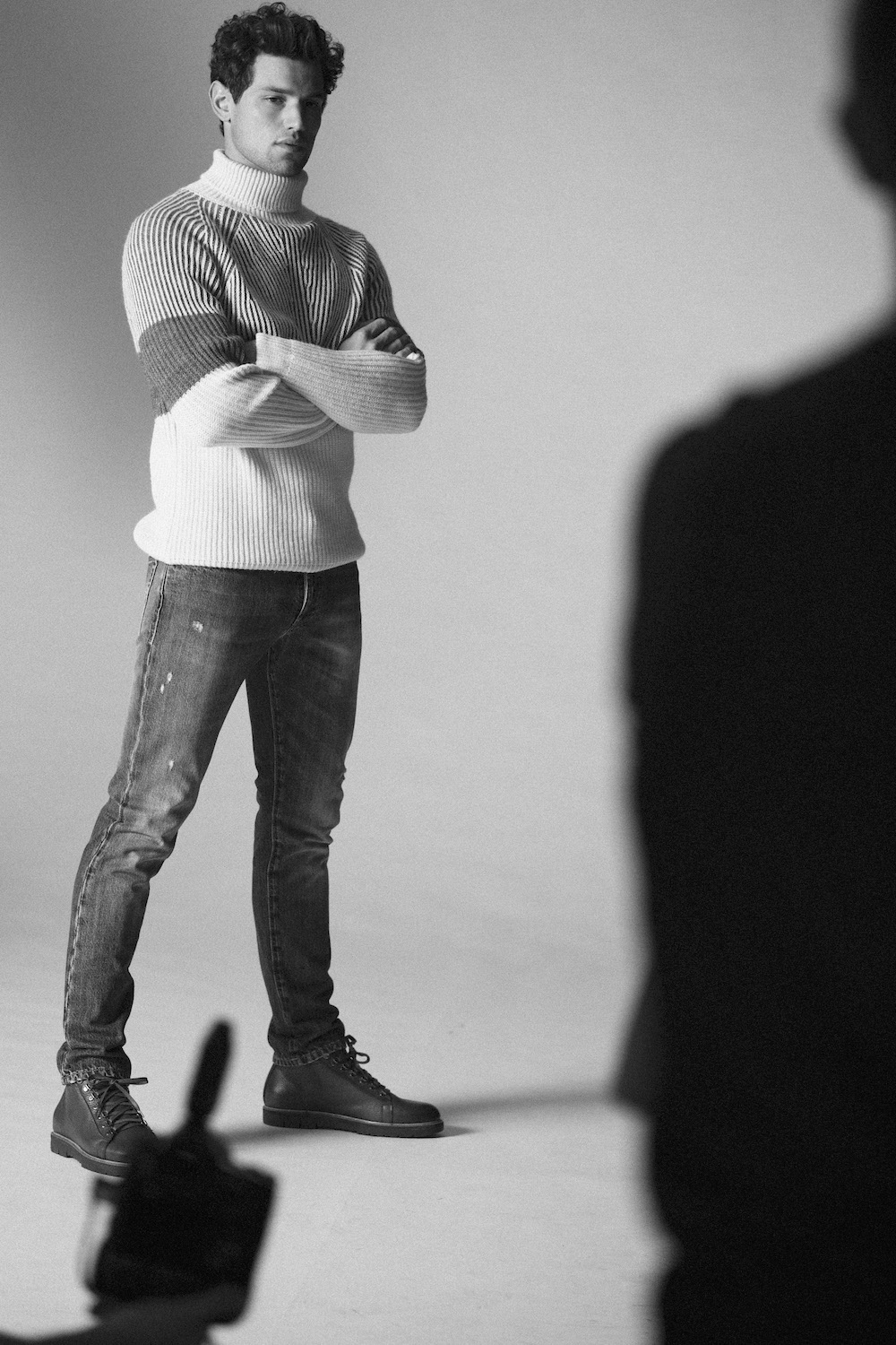 È, infatti, il nuovo protagonista della campagna Liu Jo Uomo e, anche nei ritratti in bianco e nero realizzati dal fotografo Giampaolo Sgura, non nasconde il suo spirito dinamico. Gli sguardi sono curiosi, le mani gesticolano, per dare forma e carattere a ogni capo. Il denim ha il posto d’onore nella collezione, dal taglio dritto, realizzato con una tela blu scuro allo stato grezzo oppure trattato con la tecnica stone washed per ottenere un leggero effetto invecchiato. Da abbinare a giacche in pelle lavorate, interamente realizzate in Italia, al cappotto spigato o al doppiopetto con rever a lancia e chiusura incrociata. Nella maglieria, un’attenzione particolare è dedicata ai filati: lana merino, cashmere e seta. Dai diversi pesi, extra fine o molto spesso, per affrontare preparati le correnti urbane.