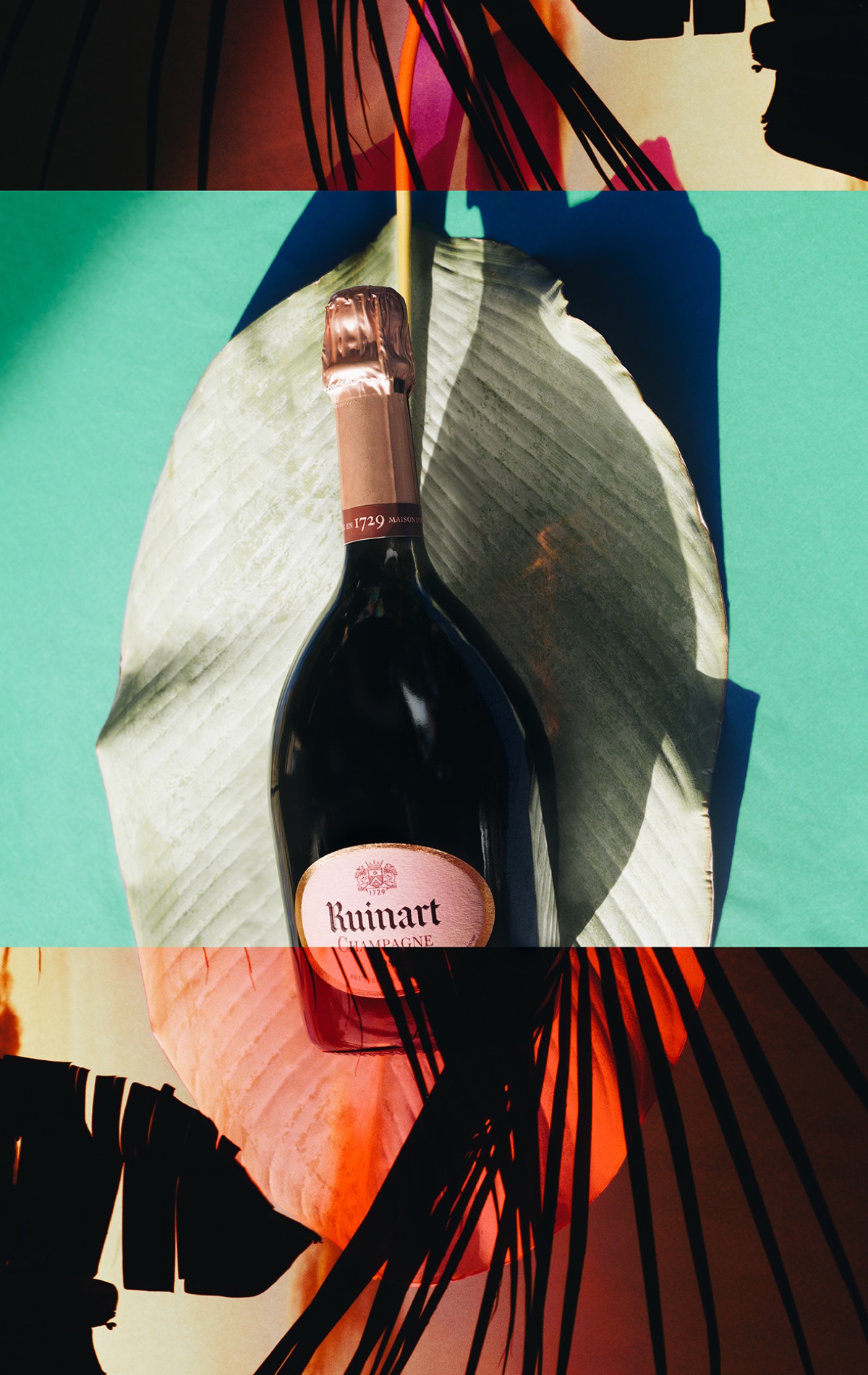 Tradizione e sperimentazione consentono a Elsa di realizzare fotografie dove le bottiglie di Ruinart Rosé sono catturate tra l’eternità dei paesaggi naturali dei vigneti e i colori, la luce e i motivi che evocano la contemporaneità dell’era digitale. Queste fotografie, luminose e seducenti, celebrative della natura, fanno eco alle note esotiche di questa cuvée composta per il 45% da Chardonnay e per il 55% da Pinot Nero, di cui il 18-19% è vinificato come vino rosso.