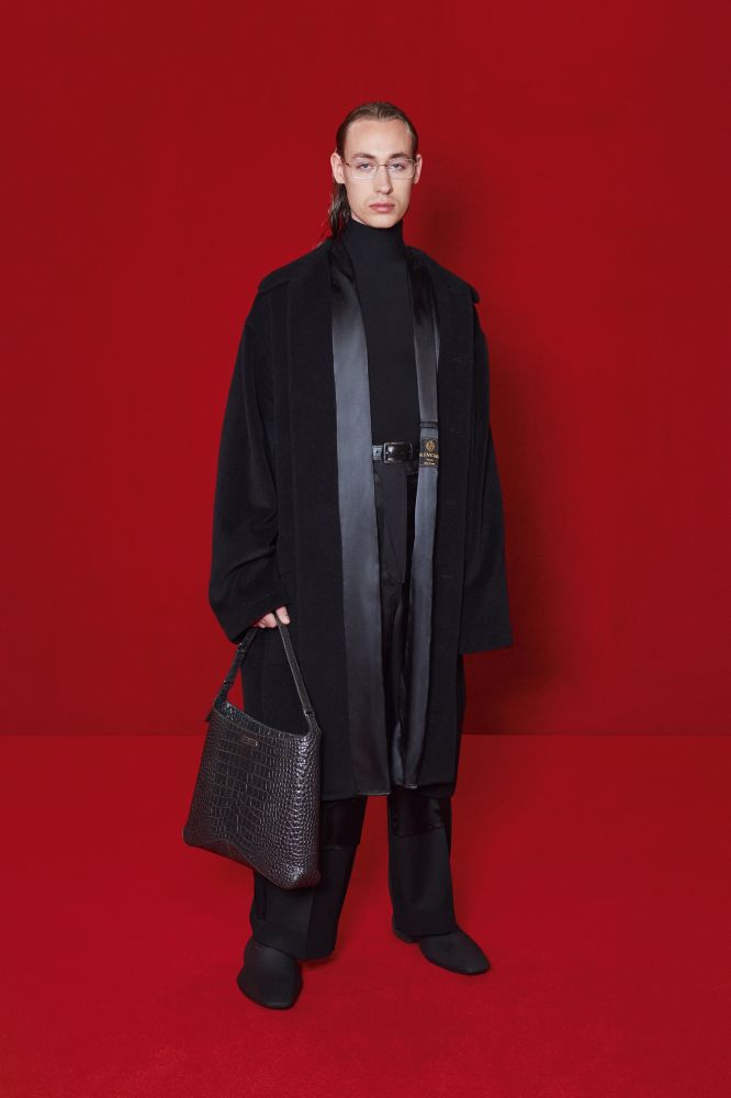Per il red carpet che esponeva la nuova collezione, da Balenciaga Demna ha presentato i nuovi accessori di pelle maschili. Tra le nuove borse di Balenciaga c’è una versione minimale ed elegante della classica borsa a tracolla, borse di pelle da indossare a spalla con anche una meravigliosa variante in coccodrillo.