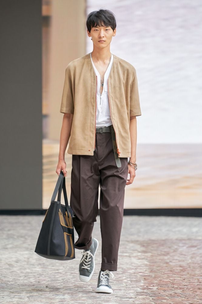 C’è ben poco da dire quando si parla delle borse di Hermès. Véronique Nichanian, direttrice creativa della Maison per la sfilata uomo primavera estate 2022 ha mostrato la sua interpretazione personale e sofisticata delle borse maschili. Dalla classica borsa per il tempo libero, fino ad arrivare alla “Bolide Skate”, una borsa di pelle con una base in alluminio che riprende la forma delle tavole da skate.