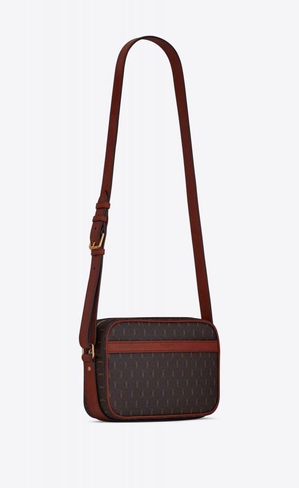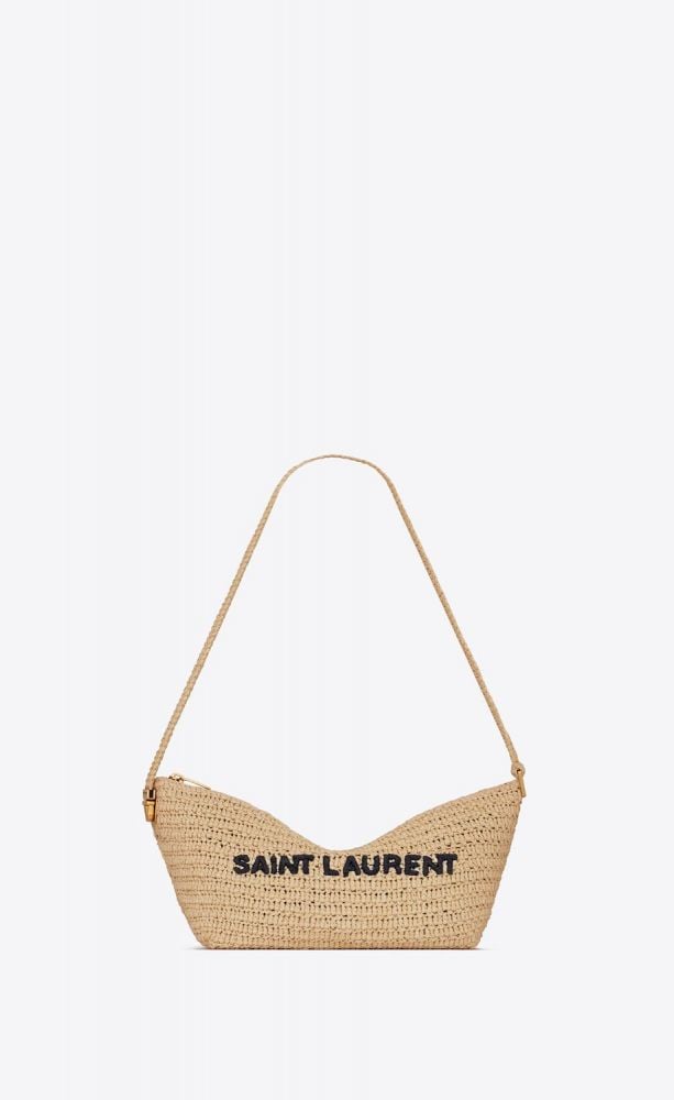 Anthony Vaccarello per la primavera estate 2022 di Saint Laurent presenta la versatile ‘Camera Bag’, rivestita in tela con il monogram del marchio francese, e la tracolla ‘Tuc‘, un esemplare estivo in raffia con chiusura push-lock e logo ricamato sul fronte.