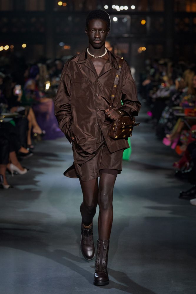 Per le strade di Parigi sfilano le creazioni di Valentino sotto la direzione creativa di Pierpaolo Piccioli. Dalla distintiva Valentino Garavani Roman Stud, tempestata da borchie che omaggio la città di Roma e il Palazzo Romano caratterizzato dal “bugnato”, fino ad arrivare alle compattissime clutch da sera e le ampie tote bag.