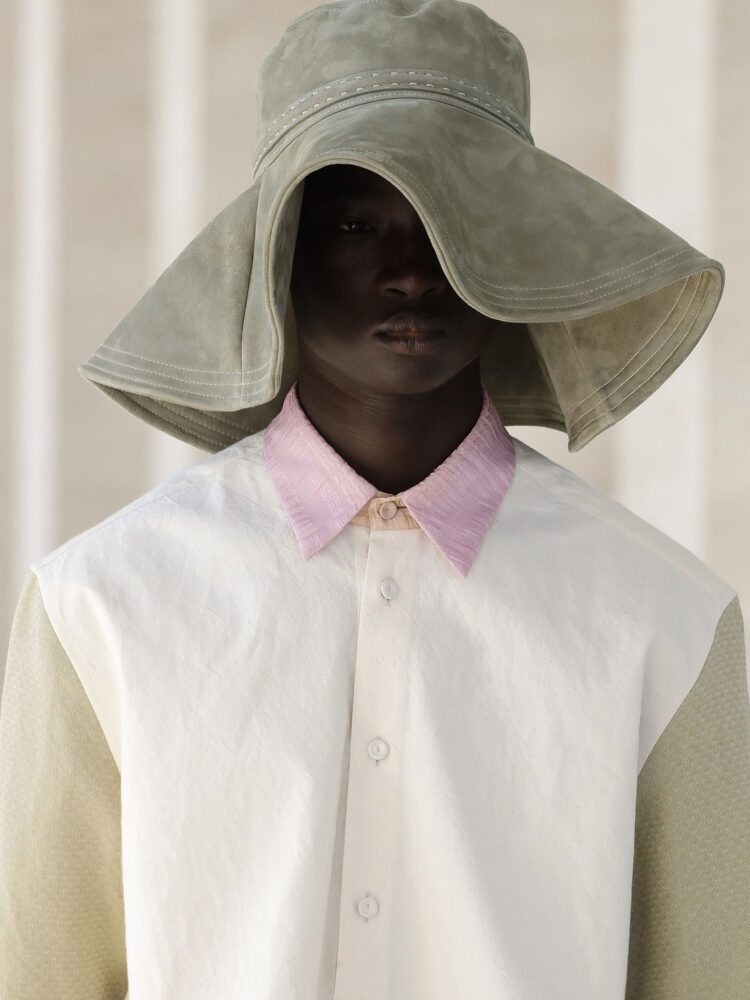 La collezione è un gioco tra leggerezza e armonia con un’attenzione acuta sul futuro del lusso. Una palette delicata rievoca la flora e i cieli cangianti della primavera, con toni pastello limone, lime, blu ghiaccio, lavanda, pistacchio e peonia a contrasto con le nuance minerali del travertino, gesso, grafite e ardesia.