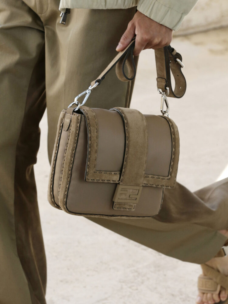 Infine la collezione accessori: una giocosa fuga dalla realtà, dove gli oggetti quotidiani si trasformano attraverso la maestria artigianale di Fendi. Gli occhialini e la cuffia, realizzati in collaborazione con Arena, si uniscono alle borse per le racchette da ping-pong diventando i nuovi e ironici accessori must have dell’estate.
