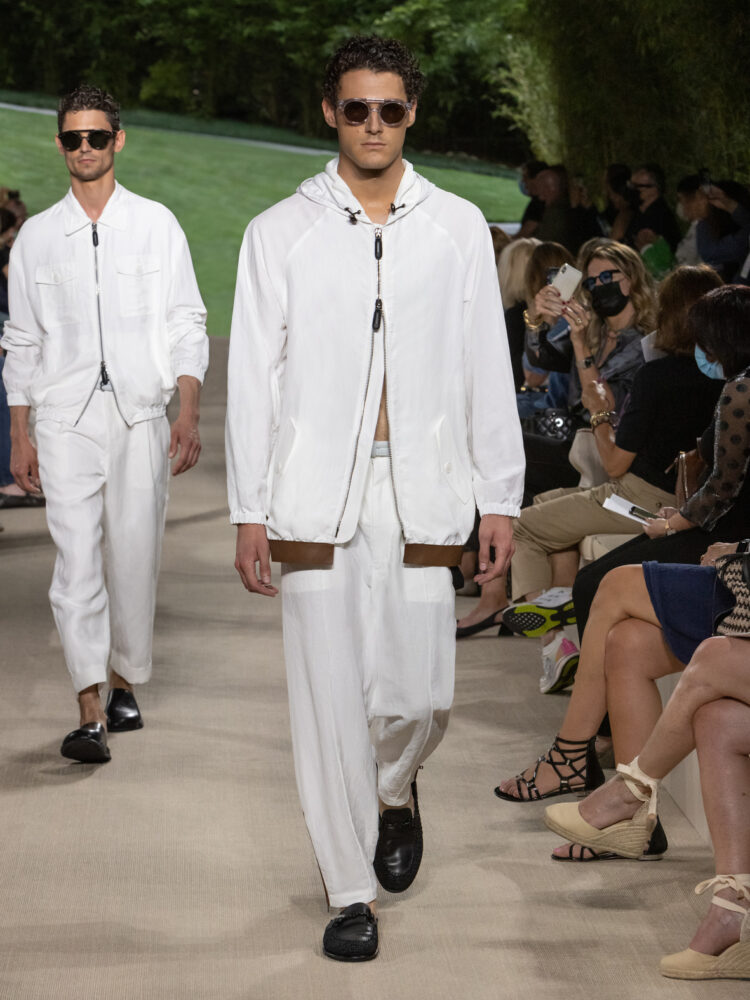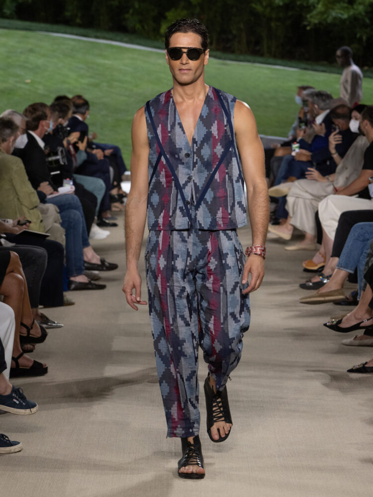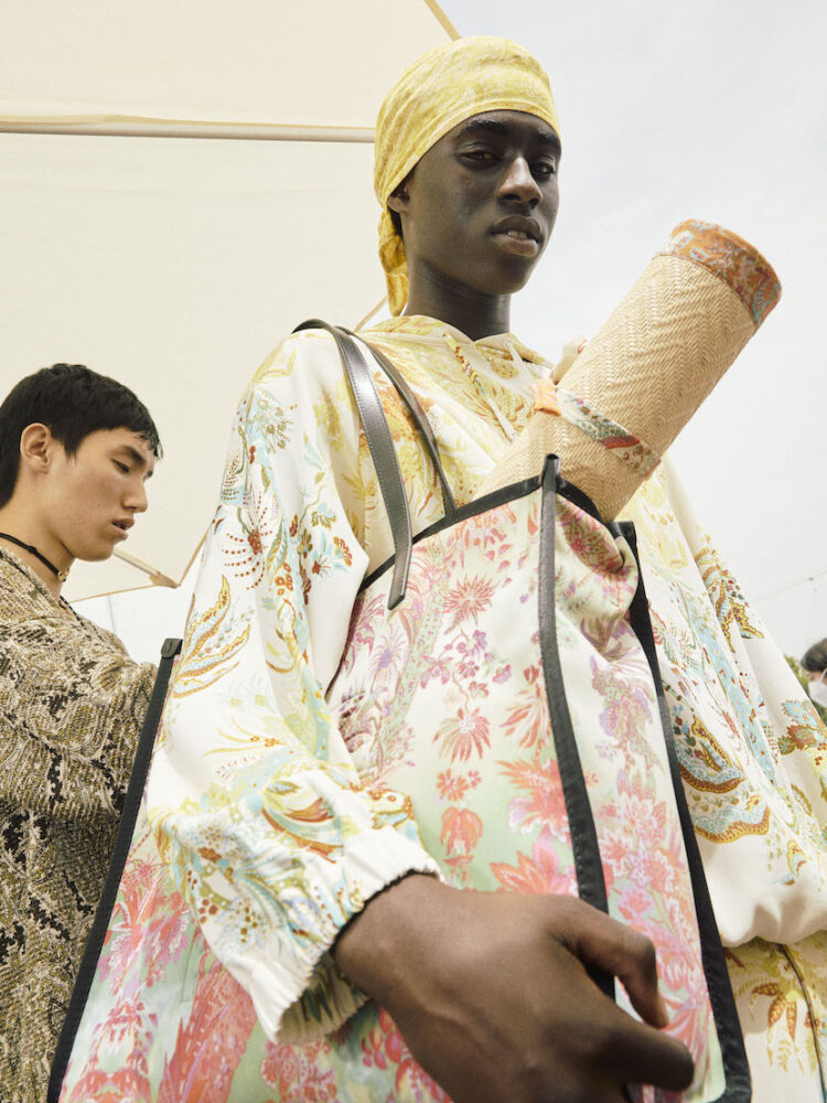 Un viaggio in un caleidoscopico stato di grazia. Così è descritta la collezione Primavera Estate 2022 di Etro che, infatti, esplora uno dei valori più iconici del brand, il suo spirito nomade. Sulle note di L’era del cinghiale bianco, uno dei capolavori di Franco Battiato a cui Kean Etro dedica l’intera sfilata, lo Scalo Farini di Milano si trasforma in una passerella, dove la natura si fa strada tra l’asfalto e dove capi fluidi e velatamente sensuali lasciano emergere la personalità di ogni viaggiatore.