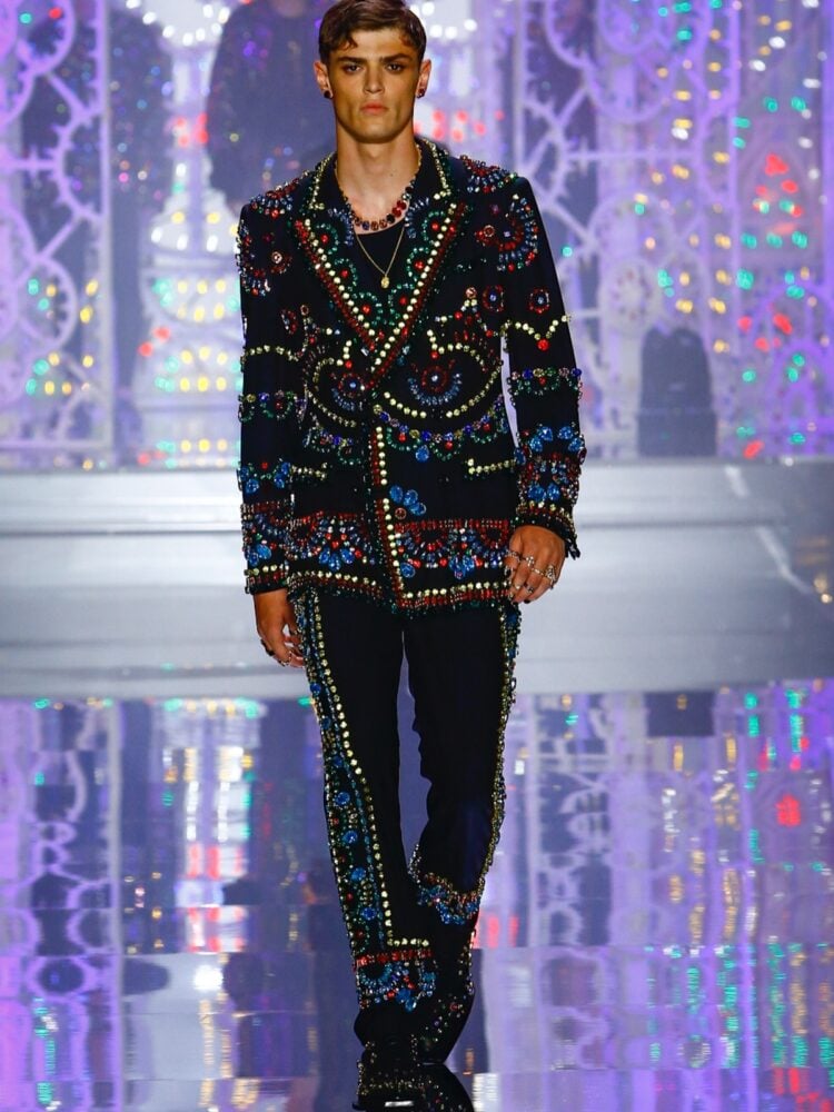 In questo gioco di luci si accende la maestria artigianale della maison in cui si fondono immagini simboliche con l’atmosfera degli anni 2000, creando nuova visione della Dolce&Gabbana che reinterpreta, attualizza e ricodifica alla luce delle nuove generazioni il Dna del brand fondendolo con il futuro.