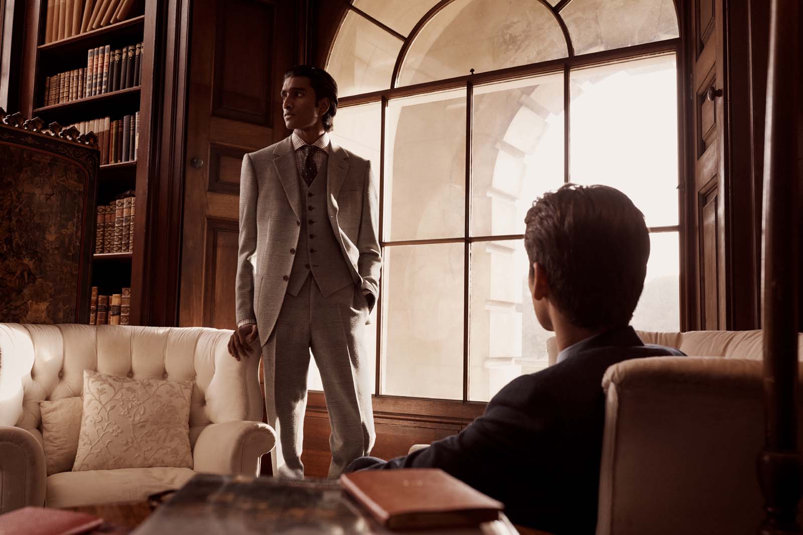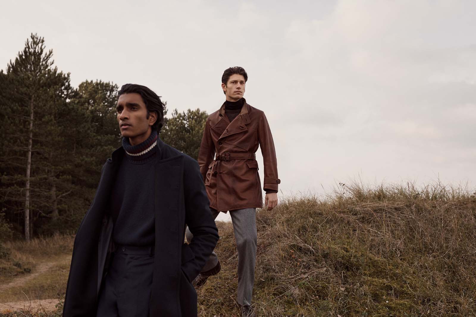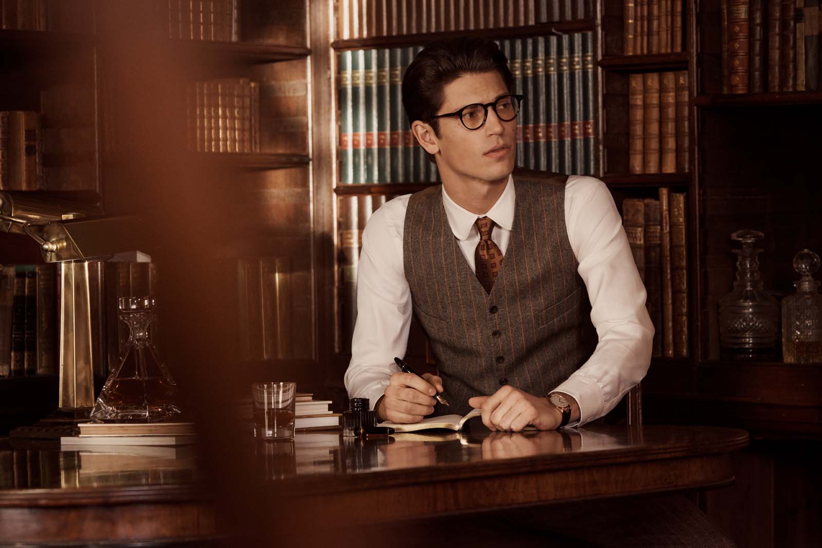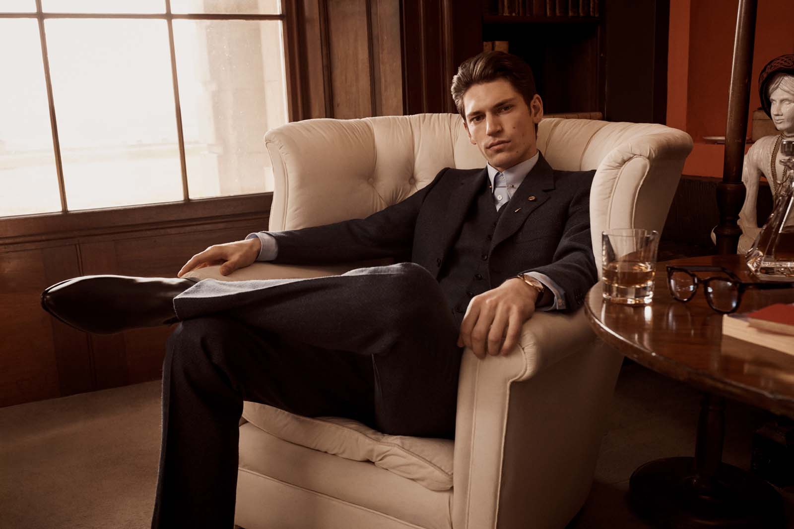 La collezione nasce dalla collaborazione con vari brand simbolo dell’eccellenza sartoriale britannica: Turnbull & Asser per le camicie; Cutler & Gross per l’eyewear; George Cleverley per le scarpe; Drake’s per le cravatte e fazzoletti da taschino; London Undercover per gli ombrelli; Deakin & Francis per i gemelli da polso e piccoli accessori; Corgi per le calze; William Lockie per i maglioni; Lock & Co. Hatters; Higgs & Crick per gli oggetti in vetro, mentre gli accessori per la scrivania sono di Smythson in Bond Street.