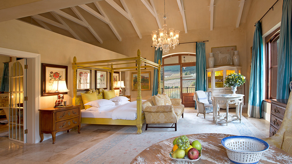 Un altro luogo magico è La Residence, sempre nella meravigliosa Franschhoek Valley. Creata dalla coppia self-made Liz e Phil Biden, che hanno ideato una serie di resort di lusso nel loro brand The Royal Portfolio. Curano nei minimi dettagli ogni particolare di architettura e design, carichi di forte originalità. Gli interni del resort, come le stanze, sono un tripudio di arte e design, che mescolano uno stile antico a uno moderno ed eclettico, ricco di colore. Si affidano all’amica Deborah Calmeyer, che con Roar Africa organizza diversi tour enogastromici in tutta la zona e che ha come testimonial star, tra cui l’attore Robert Redford.