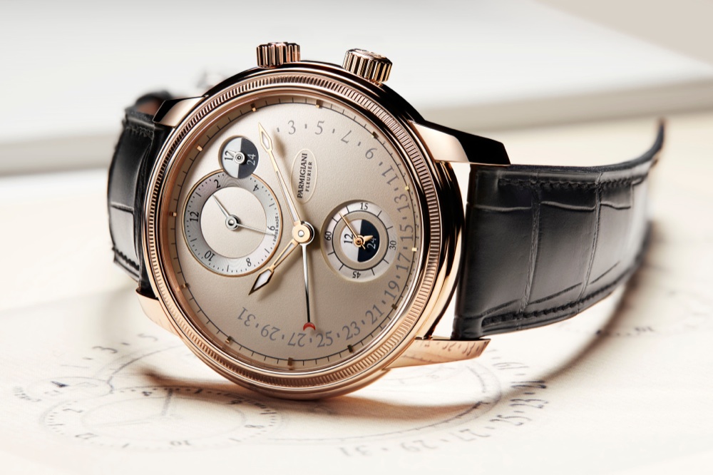 Da un antico orologio da tasca nasce l’ispirazione per ricreare un orologio che potesse offrire la stessa precisione di lettura nonostante lo spazio ridotto di una cassa che non consente di ospitare due movimenti separati. La soluzione è un calibro singolo che governa due fusi orari, entrambi precisi al minuto. Eccolo, il Toric Hémisphères Rétrograde, l’orologio del viaggiatore per eccellenza. Le lancette del fuso principale sono dorate 4N e rivestite di Super-LumiNova, il calendario è contraddistinto da numeri sottili, la cassa è in oro rosa, il quadrante bianco grené e il cinturino è in alligatore nero. Sul fondello, il movimento decorato a perlage con Côtes de Genève nel rispetto dei più elevati standard dell’Alta Orologeria.
