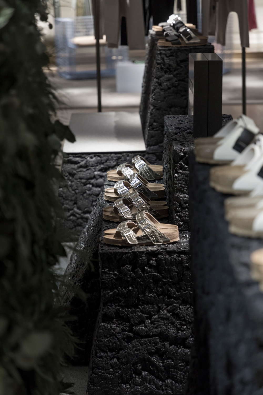 È all’interno del department store francesce Le Bon Marché invece l’inaugurazione dell’opening del pop up store di Birkenstock (aperto fino al 27 febbraio) che per l’occasione ha ospitato il designer Rick Owens e i pezzi della colab. Situato al secondo piano, il negozio è caratterizzato da elementi in sughero nero grezzo, che fondono l’heritage di entrambi i protagonisti e diventano uno sfondo perfetto per ospitare la nuova collezione.