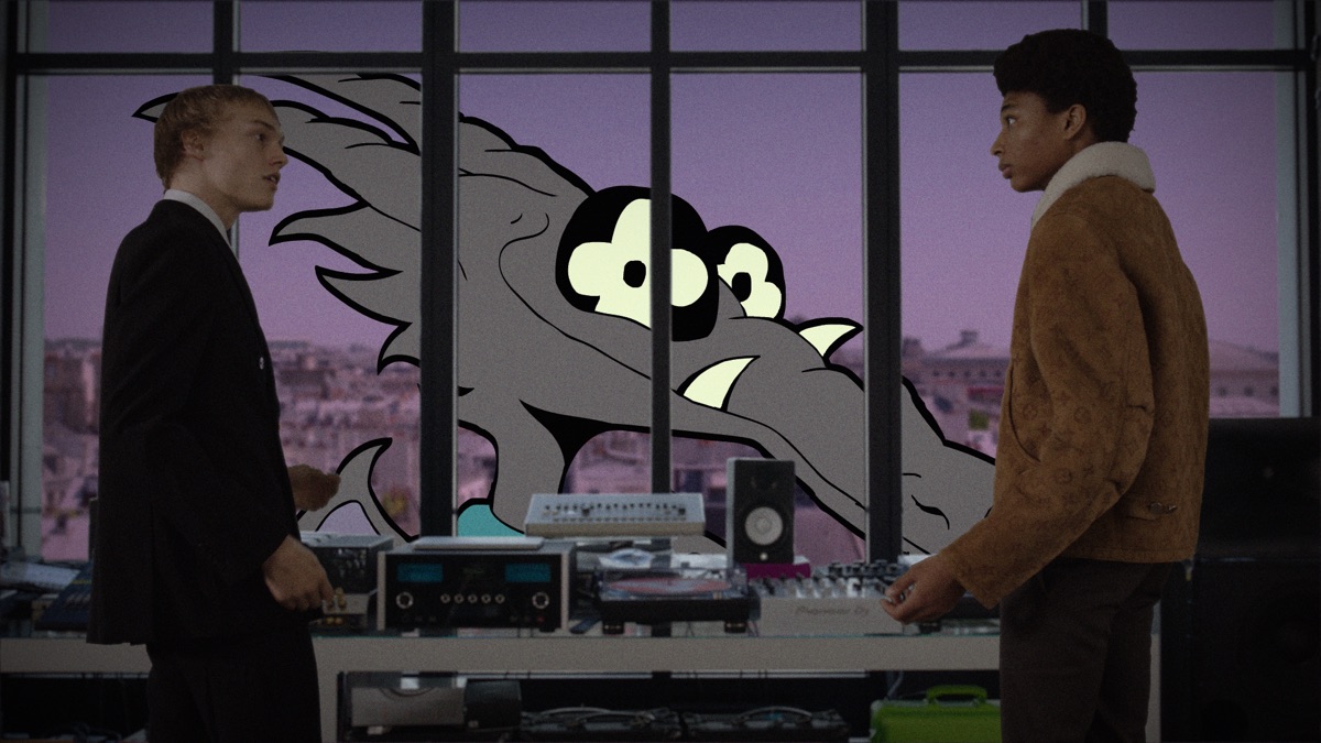 Un frame dello short film Louis Vuitton “Zoooom With Friends” che racconta attraverso un cartone animato la nuova collezione di Virgil Abloh