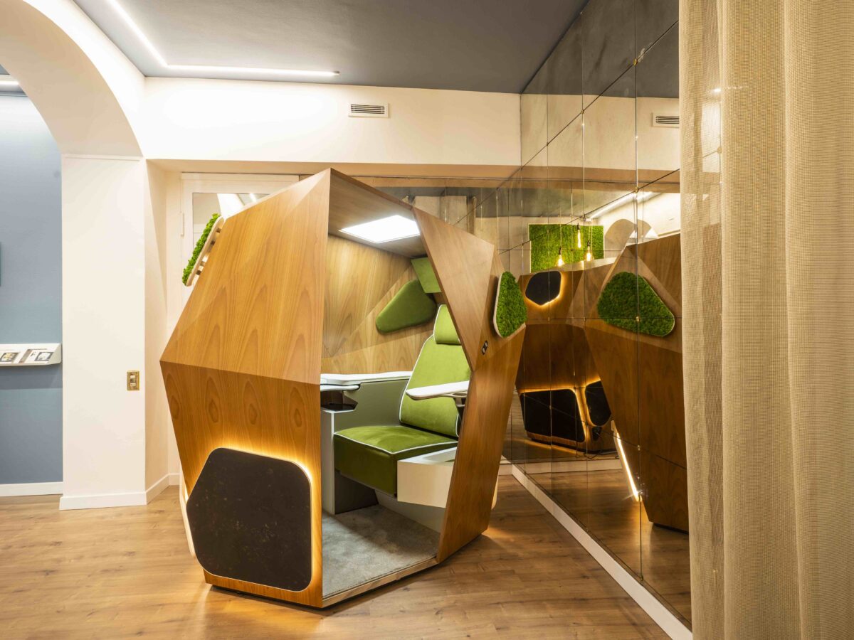 Parliamo di Pianeta, una postazione di lavoro ipertecnologica e però superambientalista, ideata dagli architetti Elli&Rini, in collaborazione con Dudan design. Che così la presentano: “È una postazione tecnologica di alto design, ecosostenibile e multifunzionale; è un luogo di lavoro ma anche di lettura, meditazione, ascolto musicale ed entertainment. È il frutto della creatività e versatilità delle arti e mestieri italiani: design, moda, arte e tecnologia convergono e prendono forma, modellando uno spazio intorno alla persona e per la persona”. I primi a crederci? Uno studio di avvocati milanesi, Trevisan&Cuonzo che ha inserito Pianeta in occasione dell’allargamento degli uffici, dedicato soprattutto ai clienti che, quando arrivano, hanno così la possibilità di entrare in uno spazio di lavoro funzionale e nel quale la privacy è totalmente garantita