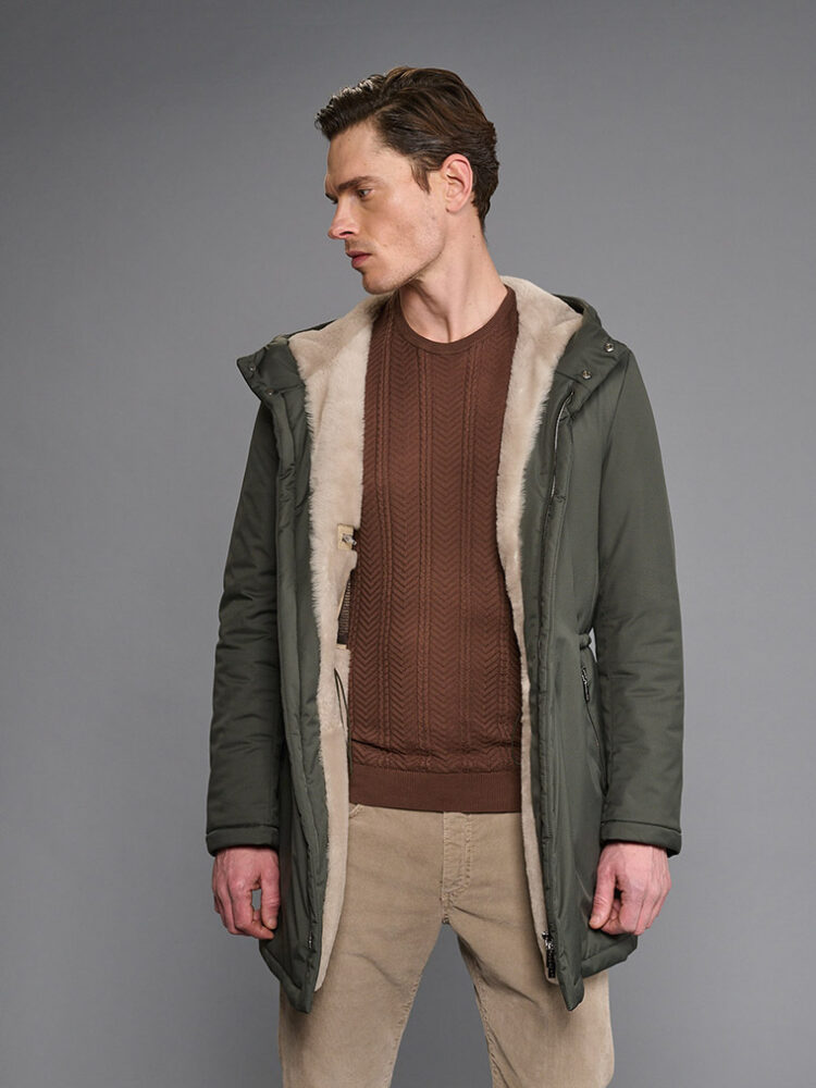 La collezione Gimo’s FW 21-22 è pensata per chi non vuole rinunciare all’eleganza dei materiali pregiati ma, al tempo stesso, ricerca un’allure sportiva. Pelle, flanelle, velluti e montone sono accompagnati da tessuti tecnici e imbottiture che garantiscono isolamento dal freddo. Emblema di questa doppia anima, il parka nel classico verde militare, con silhouette minimal e interno in pelliccia.
