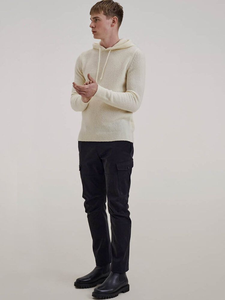La parola d’ordine per Ten C è OJJ, ossia Original Japanese Jersey, tessuto distintivo del brand, realizzato con fibre di nylon e poliestere lavorate a maglia ad alta densità, resistente al vento e idrorepellente. Non solo utilizzato sui sui capi outerwer iconici come parka, anorak, e down jacket, ma anche su maglie essenziali, in lana poliammide stretch.