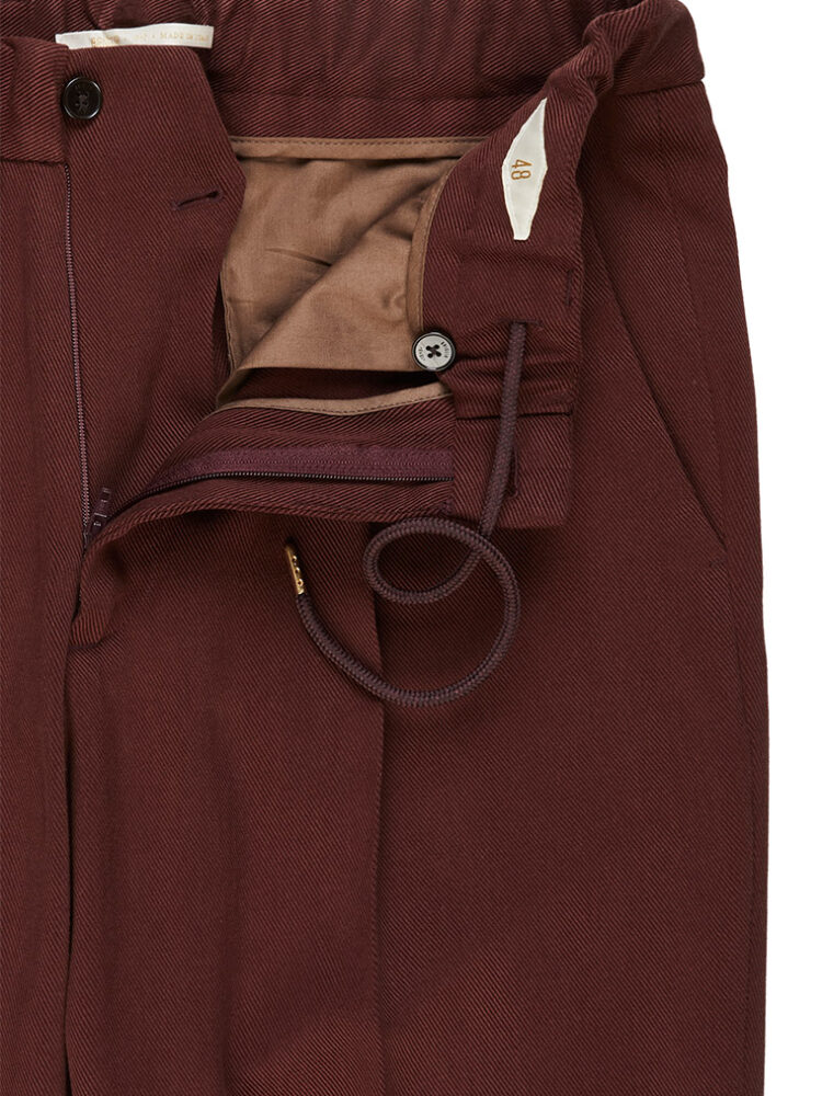 Nella collezione Briglia1949 “Racconta La Sartoria”, il brand racchiude i modelli tradizionalmente sartoriali e classicheggianti, reinterpretati e sdrammatizzati da costruzioni di cinture elasticizzate o accompagnate da coulisses interne. Pantaloni formali ma dalle vestibilità ampie, in cachemire dai colori caldi, o in tessuti leggeri come i tweed ed i velluti mano seta.