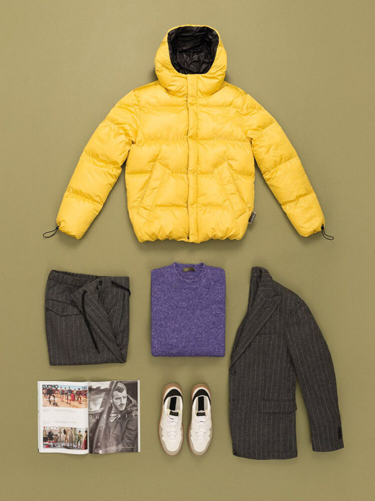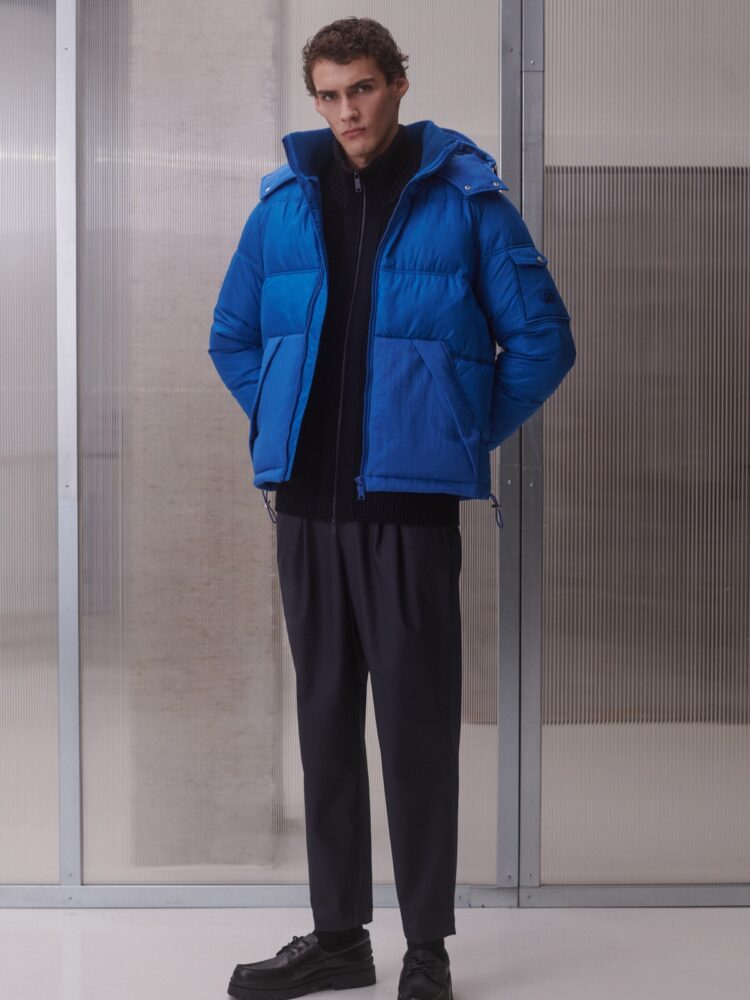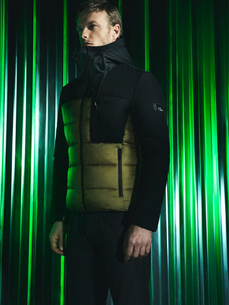 Ecco cappotti in tessuto tecnico o nylon cangiante accostato ad un softshell dalle altissime prestazioni, piumini con tessuti a maglia, sia in purezza che garzata, che permettono di ottenere un effetto di panno elastico. L’anima del nuovo outerwear ha tessuti riciclati che derivano sia dal recupero della plastica sia dai tessuti di abiti dismessi e imbottiture di poliestere riciclato, e poi ancora giacche e camicie imbottite in velluto a coste grezze, con un rivestimento resistente all’acqua per una maggiore protezione.
