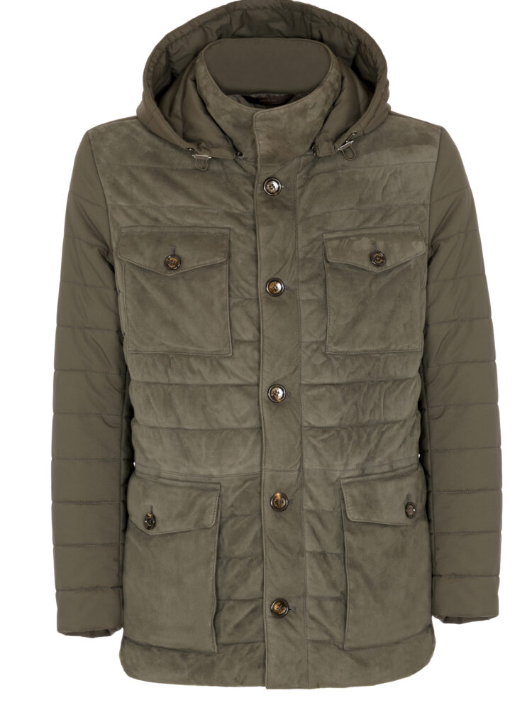 I dettagli autentici e di ispirazione funzionale, sono ammorbiditi dai materiali nobili, suede,
