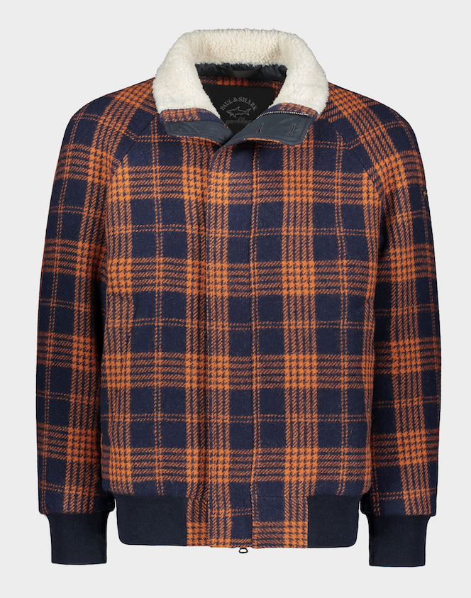 La nuova collezione FW23 Paul&Shark è una narrazione di cui capostipite è il giaccone in lana cruda con motivo tartan plaid nei toni arancio e blu scuro, in cui il particolare collo in eco shearling riprende i classici giacconi aviator tipici di quegli anni. Una rilettura moderna di disegnature anni 50, una giacca che racconta storie, realizzata tramite le tessiture utilizzate per telai d’arredamento.