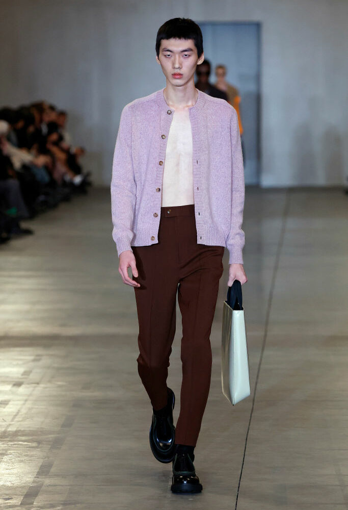 Una scansione precisa del guardaroba maschile contemporaneo è l’essenza della sfilata di Prada per il prossimo autunno inverno 2023/24. la Signora Miuccia e Raf Simons hanno guardato alla società moderna in ricerca del ruolo primario del vestire. “Noi parliamo sempre di realtà e, come stilisti, siamo molto attenti a ciò che accade nel mondo, ai problemi e alle difficoltà’ spiega Miuccia Prada. ‘questa collezione è la nostra reazione a un momento storico complicato. Abbiamo lavorato con onestà alla creazione di abiti utili per le persone, che rappresentino la nostra idea della realtà odierna’.