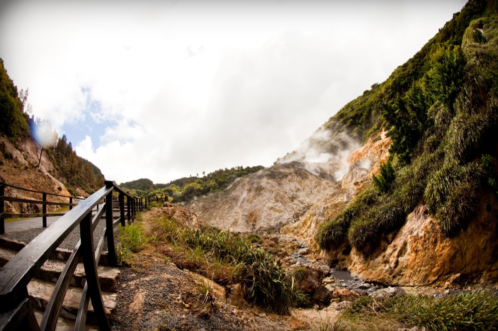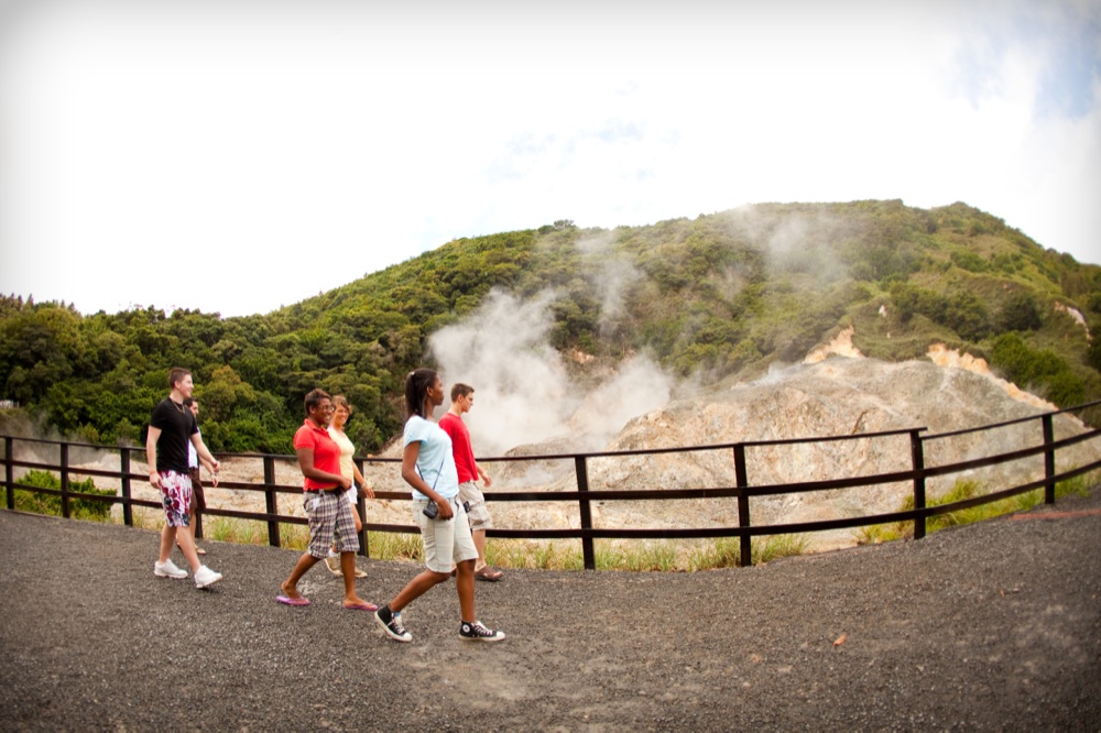Oppure si può partecipare all’escursione in auto e a piedi che porta al vulcano, attraversando l’isola tra piantagioni di banane, villaggi di pescatori per arrivare alle famose Sulphur Spring, le terme di acqua bollente che si trovano al centro del vulcano.