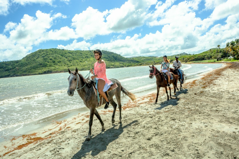 Si può andare alla scoperta della costa nord dell’isola a cavallo, percorrendo la bellissima spiaggia vulcanica che a tratti cambia colore tingendosi di rosa e di nero.