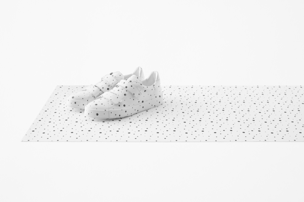 Oltre all’installazione, Nendo ha realizzato una capsule collection che avvicina lo stile minimal del brand all’universo dell’architettura e del design. La collezione si compone di quattro pezzi tra cui le strap sneakers, rivisitate dal designer utilizzando la pelle bianca e il pattern a pois catturato dalla macchina fotografica. La capsule collection sarà disponibile a partire dal 4 aprile online sul sito jilsander.com e nel flagship store di Milano in Via Verri 6 che per l’occasione customizzerà le vetrine con alcune opere di Nendo. Solamente per la settimana del Salone del Mobile sarà possibile acquistare la capsule anche nel Nendo for Jil Sander store situato all’interno dello showroom del brand.