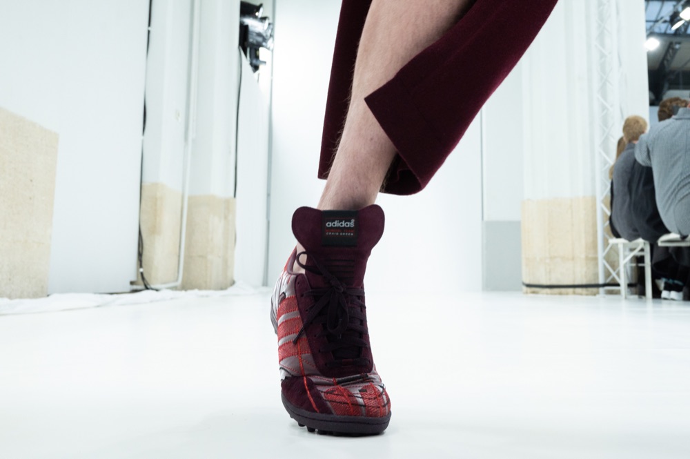 Rinnova la sua presenza anche adidas, grazie alla seconda collaborazione con Craig Green. I modelli in questione sono tre, con look che rifletteno perfettamente il senso per l’avanguardia utilizzato da Craig Green. La Superstar, che si sporge un po’ più vicino al lato minimo dello spettro, si veste di base nera con dettaglio delle cuciture intrecciate dal verde neon e bianchi luminosi e incisivi. Sparsi sulla linguetta, e lungo il lato, una lavorazione della pelle abbastanza simile all’approccio di Green ha con i capi. Allo stesso modo, il modello Samba si rielabora con una linguetta accentuata, mentre si aggiunge in cima il dettaglio di un ricamo caotico. Un nuovo modello BOOST completa la caspule, rinunciando al colorato a favore di una fascia tecnica di calze di nylon e ammortizzate.
