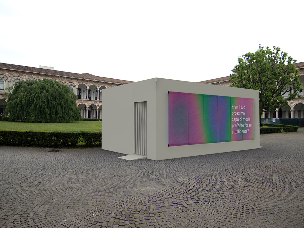 Varcando la soglia della struttura temporanea allestita all’Università Statale di Milano, sarà possibile accedere a un ambiente composto da due stanze, ciascuna associata a un colore: il blu e il rosso. L’inedita permanenza in un ambiente completamente monocromatico genera ‘disturbi’ alla retina, abituata a ricevere una più ampia gamma di sollecitazioni cromatiche contemporaneamente. Senza agire sulla regolazione della temperatura dei due spazi, la cromosaturazione può suggerire nello spettatore sensazioni fisiche di freddo o di caldo, evocando la capacità di regolazione della temperatura della Heatable CapsuleCollection. Contraddistinta da un volume sobrio ed essenziale, all’esterno l’installazione sarà contraddistinta da una facciata ‘cambia colore’.