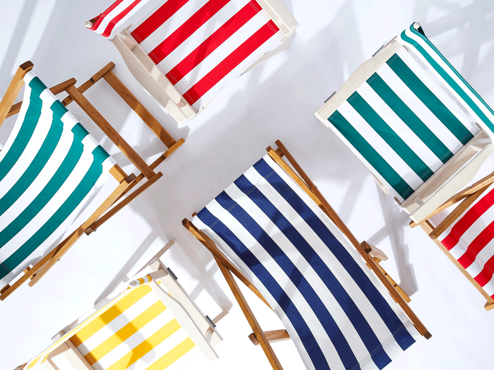 The Conran Shop, storico (e super cool) negozio londinese dedicato all’arredamento, offre la collezione di sdraio e sedie da regista definitiva, semplicemente perfetta: righe colorate su sfondo bianco, un omaggio agli stabilimenti balneari di una volta. Disegnate a Londra ma prodotte in Italia, le sdraio e le sedie da regista sono realizzate con legno di faggio tinto di bianco e sono dotate di cerniere antiruggine e tessuto sfoderabile. Per creare un angolo di estate sul terrazzo o in giardino.