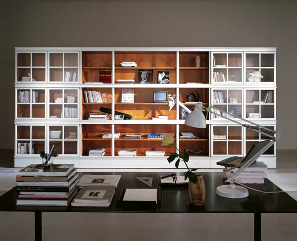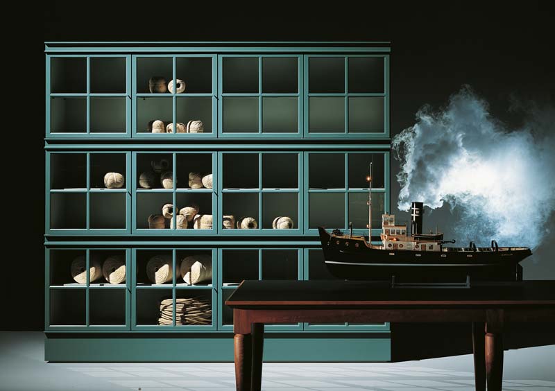 Nello stand di Molteni&C, al Salone del Mobile del 1993, la libreria Piroscafo di Aldo Rossi e Luca Meda venne presentata come fosse veramente un enorme Piroscafo, lungo 13 metri, con tanto di fumaioli, un bastimento dai toni quasi felliniani stile Rex di Amarcord. Uno spettacolo allora, che le immagini del tempo riportano nella sua ancora intatta potenza immaginativa. Il progetto, nato un paio d’anni prima, non smette di avere successo, con quella sua forma, come fosse la facciata continua di un edificio tutto a finestre che diventa parte del paesaggio domestico. E dentro quel palazzo di legno, ferro e vetro non ci sono divisioni, i ripiani non hanno divisori, sono continui; dalle finestre a chiusura ermetica, proprio come sulle navi, si vede bene cosa c’è dentro, grazie anche alla luce interna. Bella è anche la genesi del progetto che Rossi e Meda intuiscono quando, passeggiando per Perugia, si trovano davanti la grande facciata vetrata verde del Centro Fontivegge disegnato proprio da Rossi. È così che un’architettura urbana, cambiando scala, entra nelle case e continuano a farlo da 30 anni giusti, diventando non solo libreria, vetrina, ma anche madia in cucina dove tutto sta, tutto è a vista. In occasione dei 30 anni, Molteni ne propone oggi una nuova versione con nuova facciata laccata in un caldo colore Spice e interni in eucalipto.