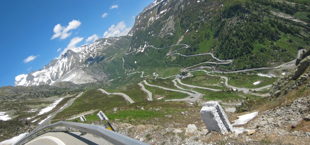 La Svizzera è la patria degli amanti dell’alta montagna: qui si trovano gran parte dei passi europei sopra i 2.000 metri facilmente raggiungibili grazie alle strade perfettamente asfaltate. Dopo aver raggiunto Bellinzona, si punta verso nord attraverso il Passo del Lucomagno, a 1.920 metri , che si trova tra i cantoni Ticino e Grigioni. Raggiunta Disentis ci si dirige verso Andermatt, percorrendo l’Oberalp, per poi attraversare tre passi, uno più spettacolare dell’altro : Susten (2:224 metri), Furka (2.429 metri) e Grimsel (2,165 metri) con panorami che rimarranno impressi nella memoria. Al rientro si percorre il Passo del San Gottardo: una “scalata” di 27 km che porta ai 2.108 metri di altitudine dello storico Passo.