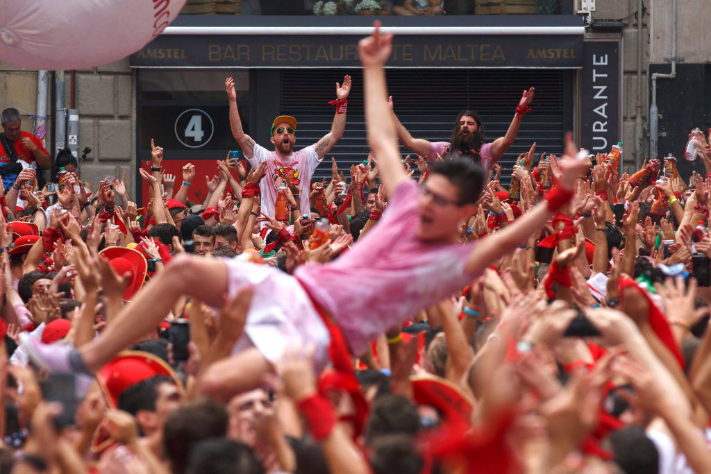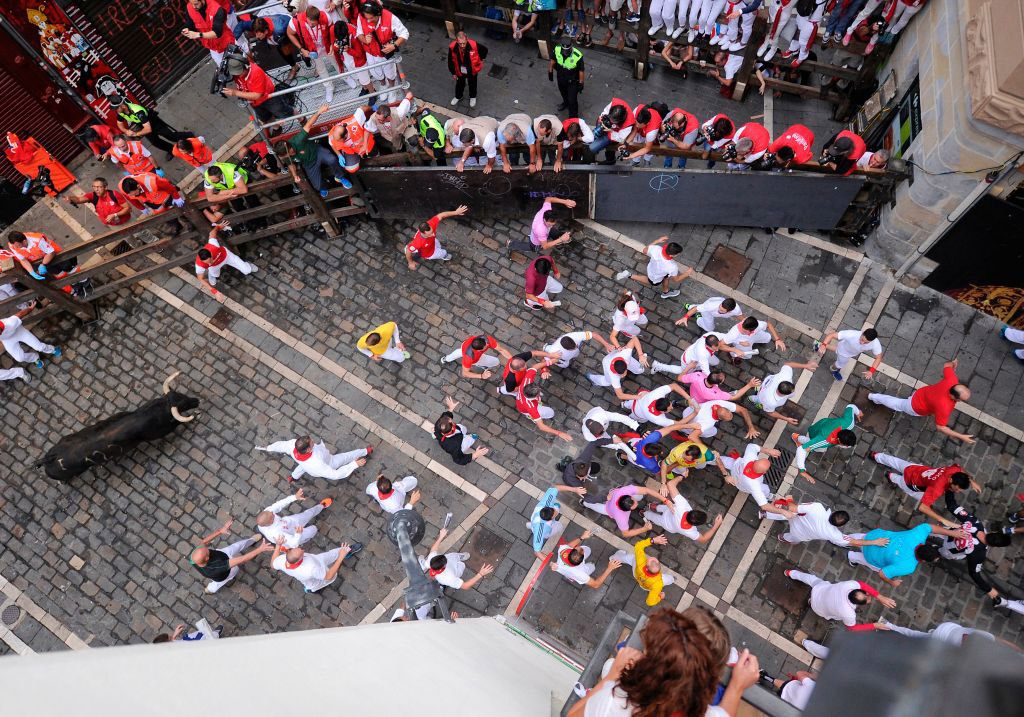 L’atmosfera caliente trascina coloro che decidono di correre inseguiti dai tori, con l’obiettivo di entrare trionfalmente nell’arena in Plaza de Toros, ma anche chi è meno coraggioso. Questi ultimi, senza rischi, si godono lo spettacolo dal bar Zaldiko, in cima alla via che parte dal Coralles del Gas.