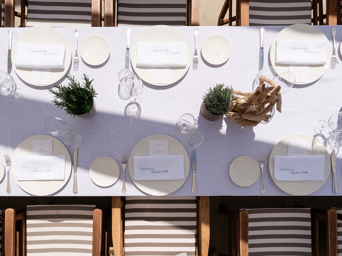 Dalla suite alla spiaggia, l’accoglienza si trasforma in una dichiarazione di lifestyle: plaid in cashmere naturale nei toni del grigio chiaro vestono gli spazi outdoor dell’Augustus Beach Club e le zone open air del ristorante, aggiungendo un tocco discreto e sofisticato al relax balneare. Non si tratta solo di comfort, ma di un’estetica che invita a rallentare, respirare, sentire.