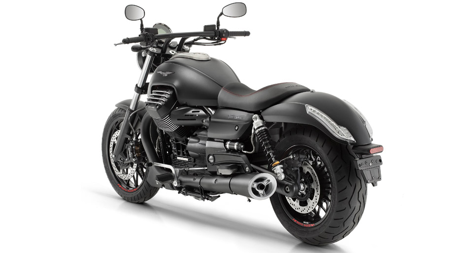 Moto Guzzi Audace – L’obiettivo è valorizzare la potenza del bicilindrico con un mezzo muscoloso, cattivo e appariscente. Non c’è traccia di cromatura, tutti i dettagli sono scuri, donando intensità alla composizione delle forme. Il frontale è la parte stilisticamente più leggera, grazie al gruppo ottico circolare e alla forcella priva dei cannocchiali. Gran cura per la sella, rivestita in skai Alcantara con cuciture rosse a vista. La posizione di guida è più allungata e dominante, quasi ad essere sempre pronti allo scatto. (Credits: Moto Guzzi)